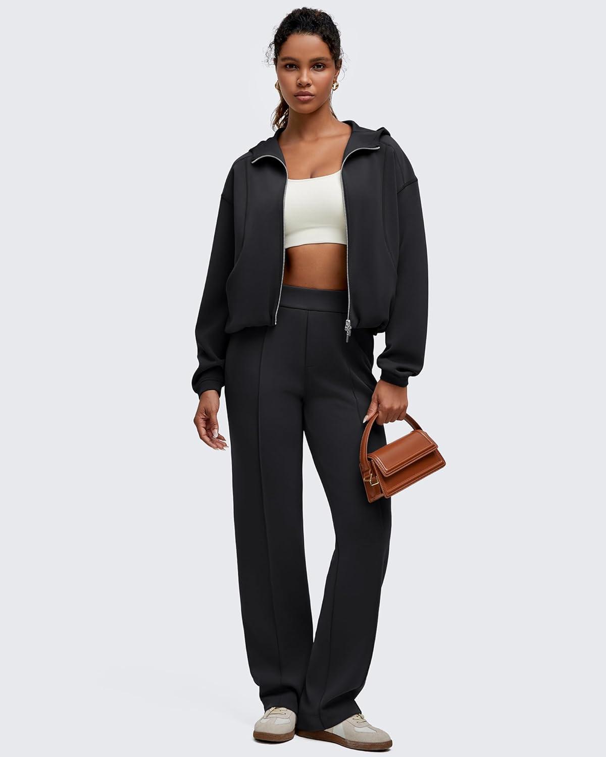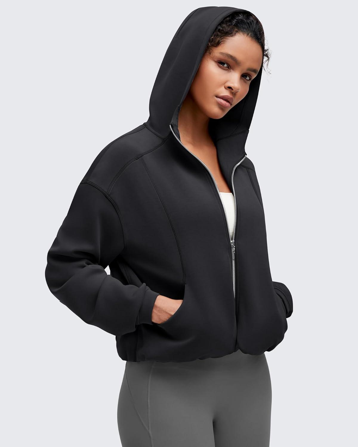 G4Free Smoofit Women’s Two Way Full Zip Jackets Modal Soft Casual Hoodie with Pockets(Black)