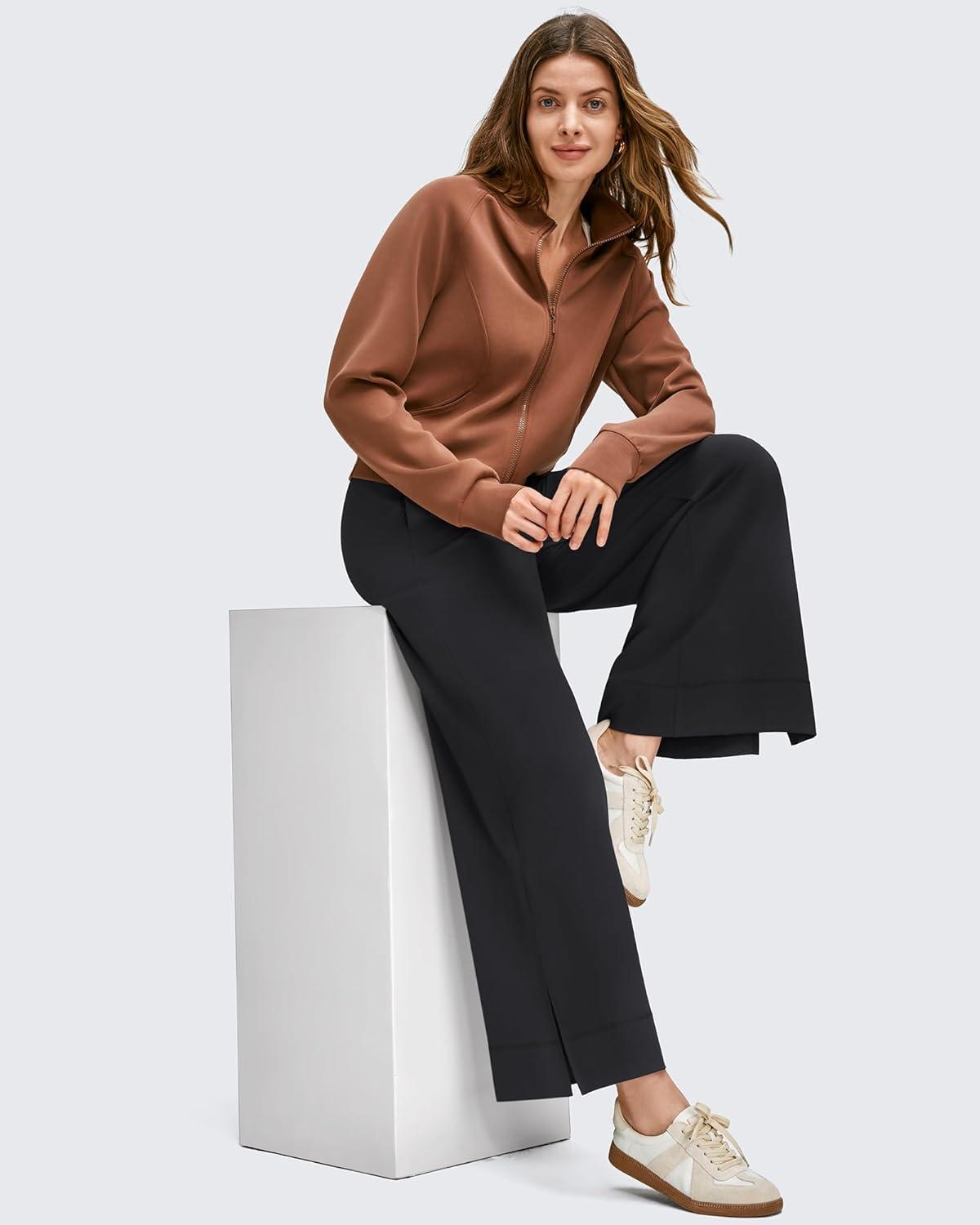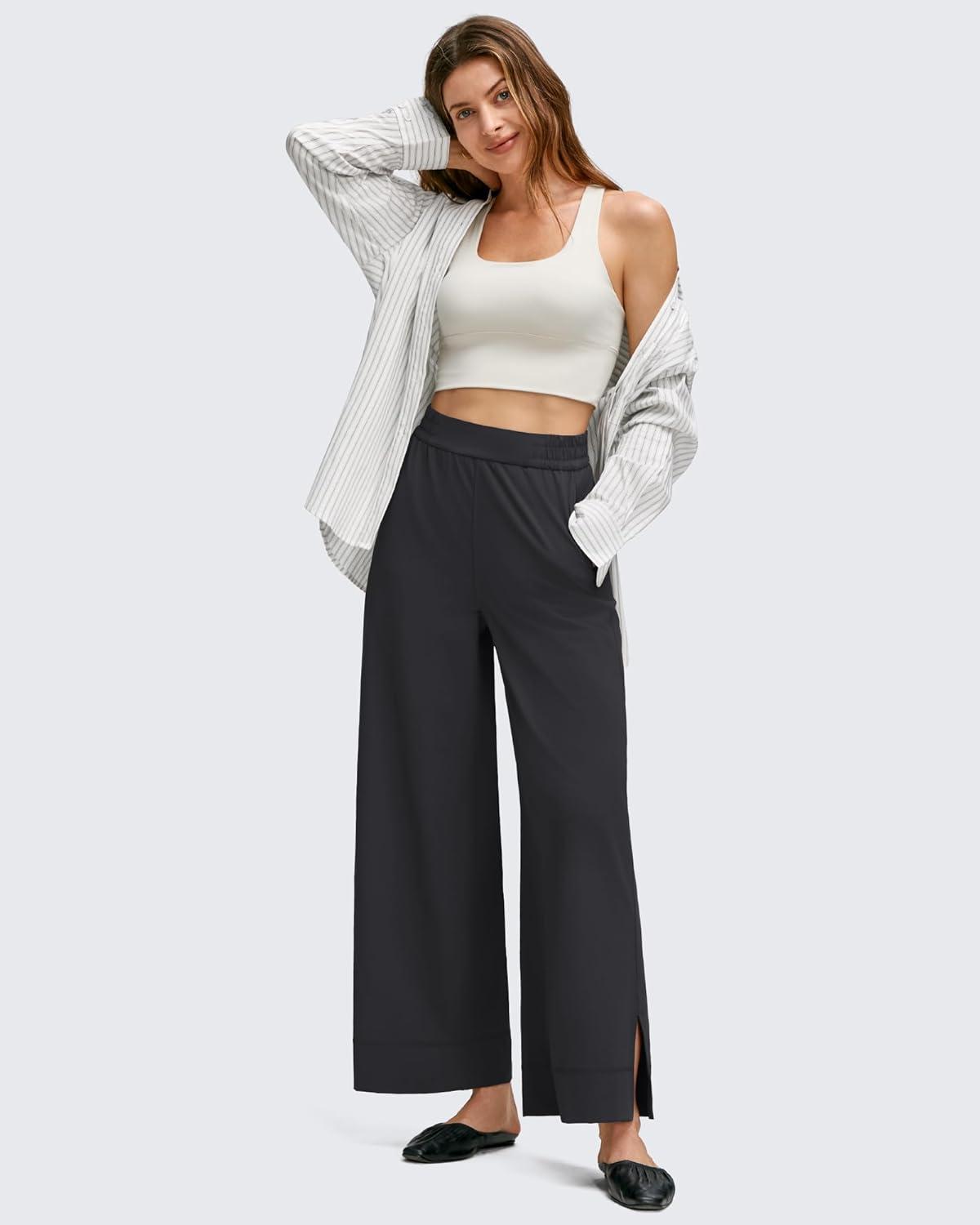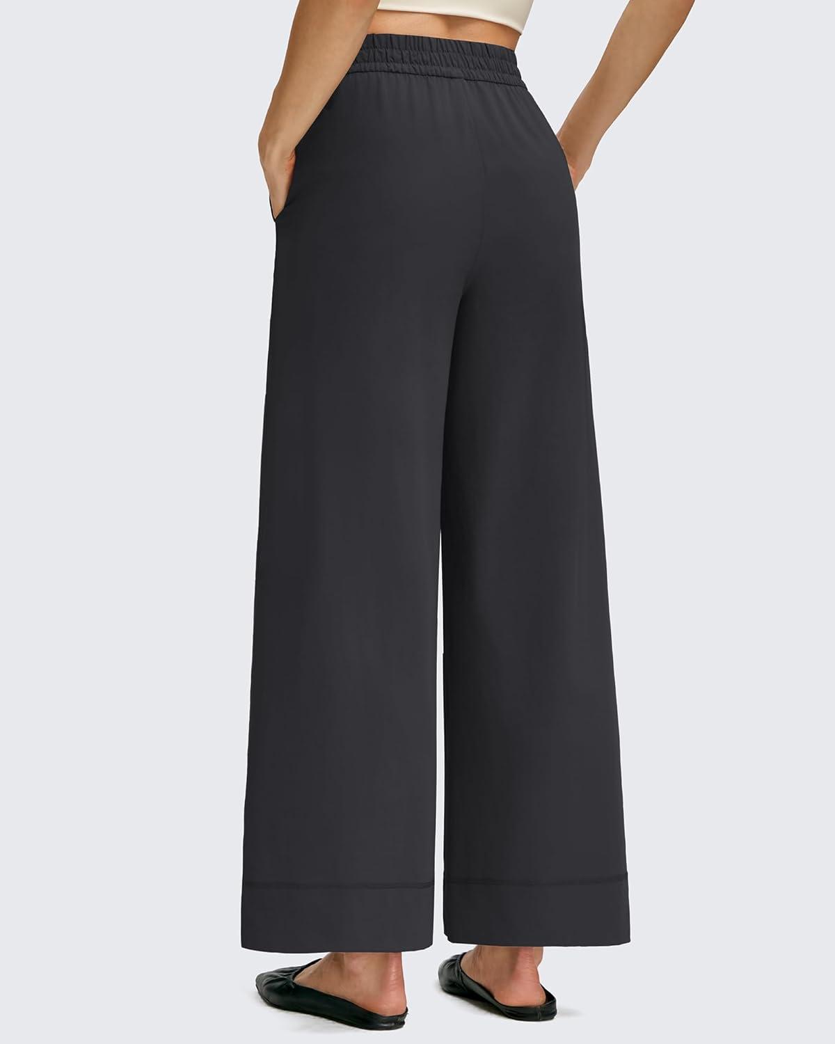 G4Free Strowen Women Lightweight Wide Leg Ankle Track Pants with Pockets Stretchy Casual Travel Trousers(Black)