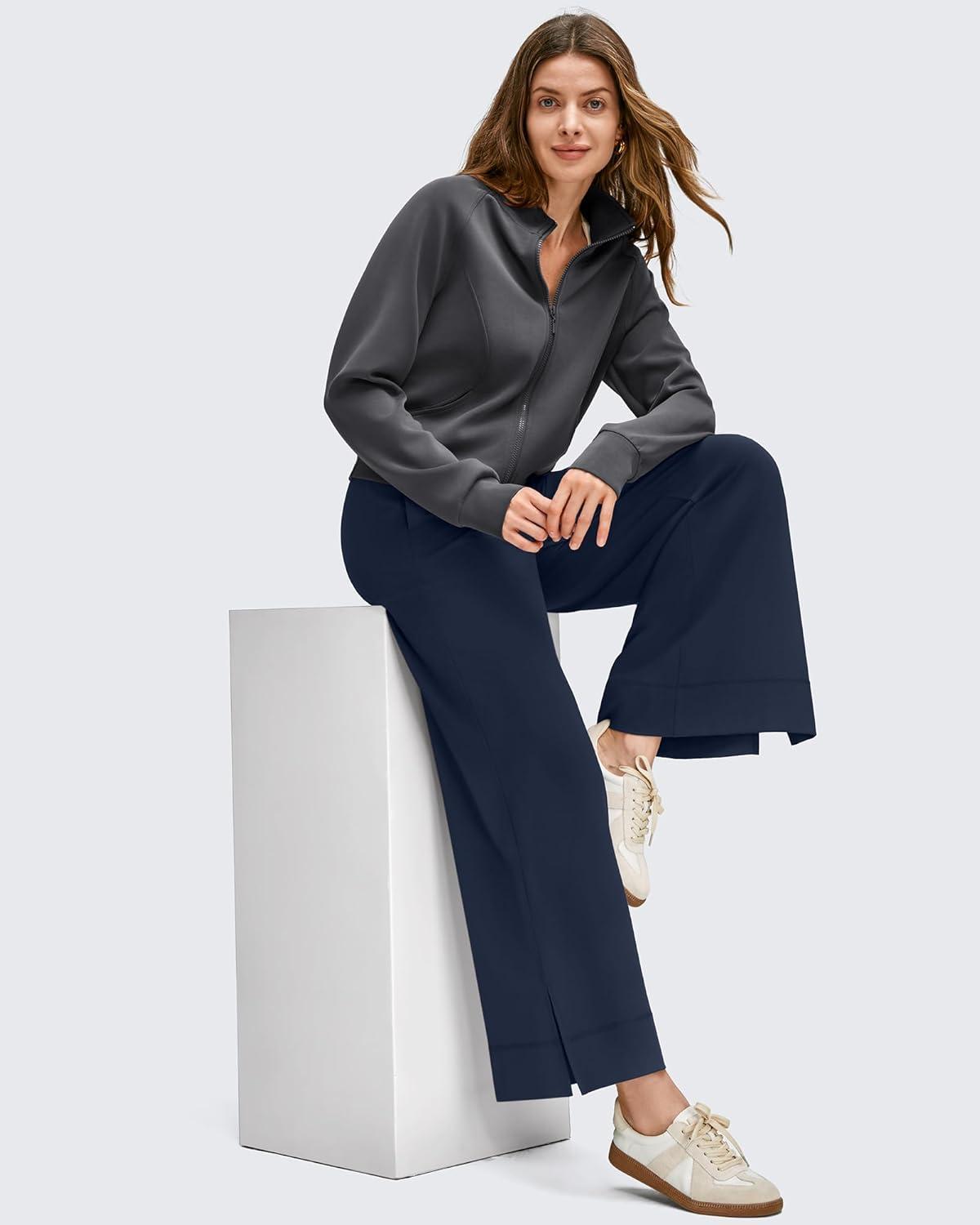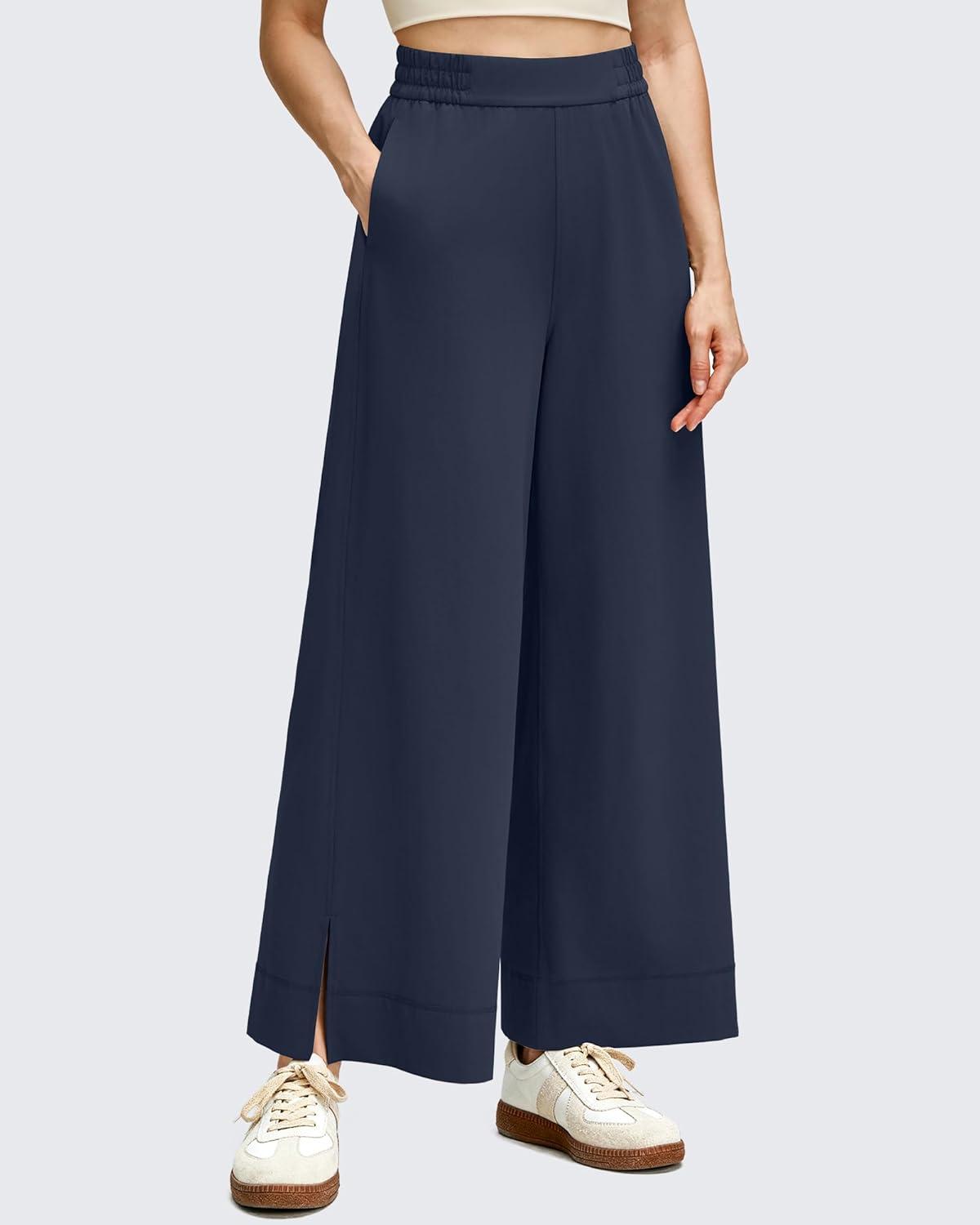 G4Free Strowen Women Lightweight Wide Leg Ankle Track Pants with Pockets Stretchy Casual Travel Trousers(Dark Navy)