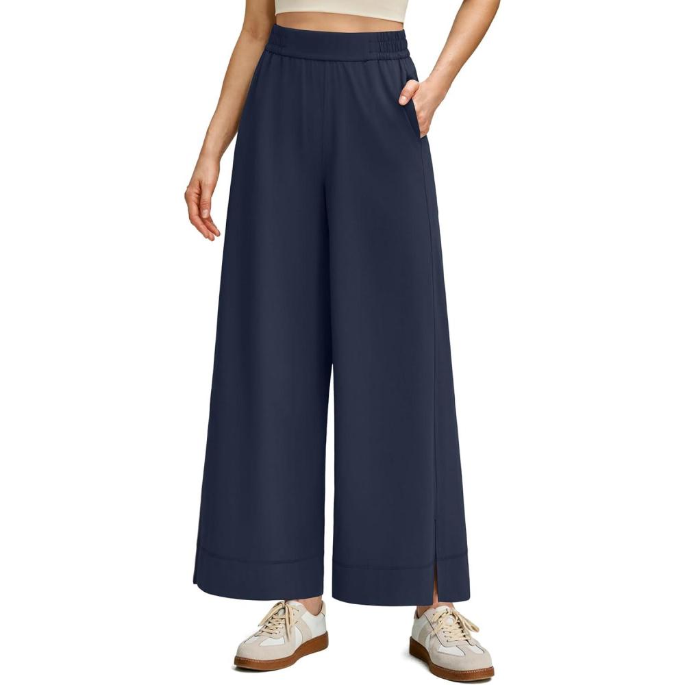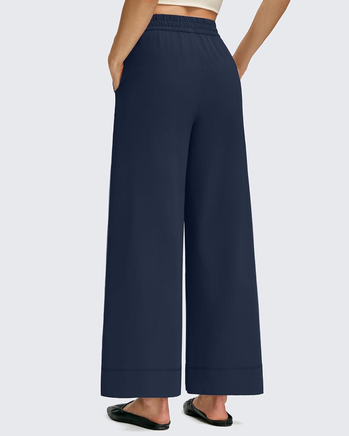 imageG4Free Strowen Women Lightweight Wide Leg Ankle Track Pants with Pockets Stretchy Casual Travel TrousersDark Navy