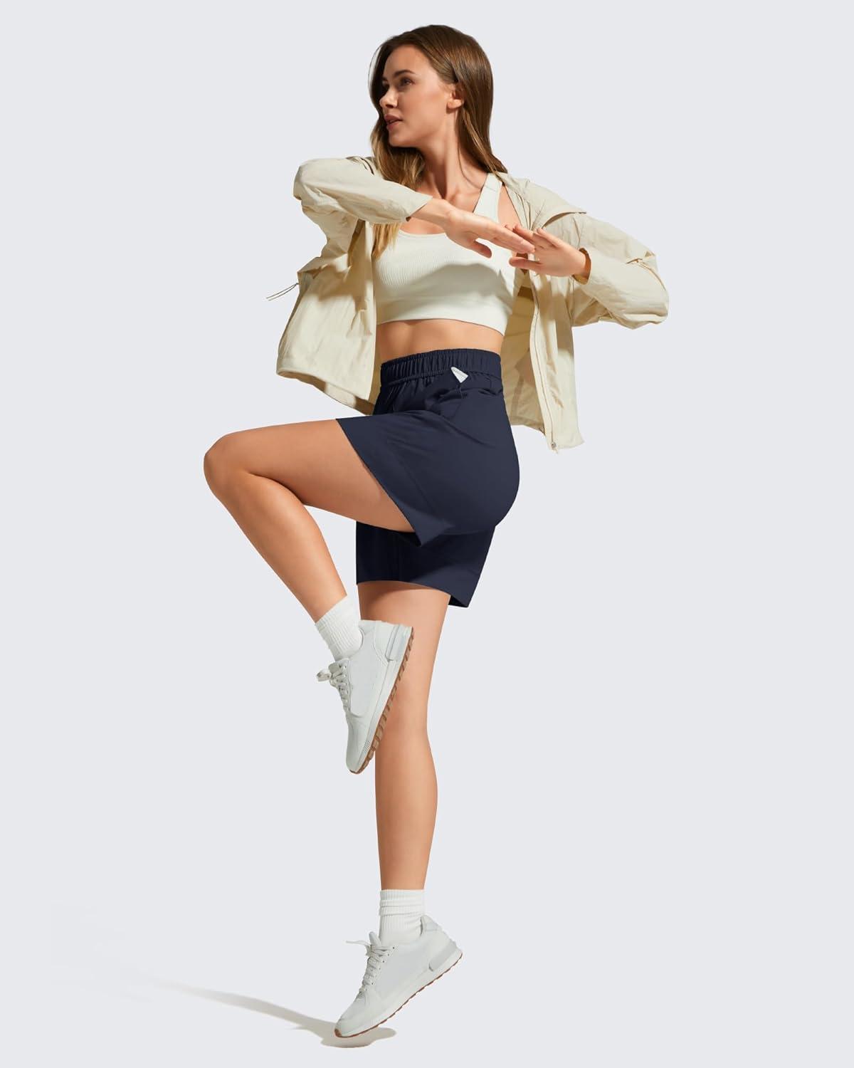 imageG4Free Strowen Workout Shorts for Women 4 Elastic Waist Wide Leg A Line Shorts with Pockets Casual AthleticDark Navy