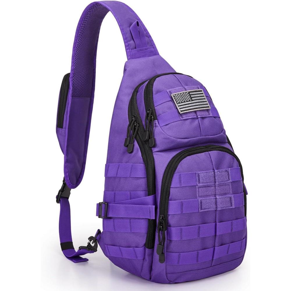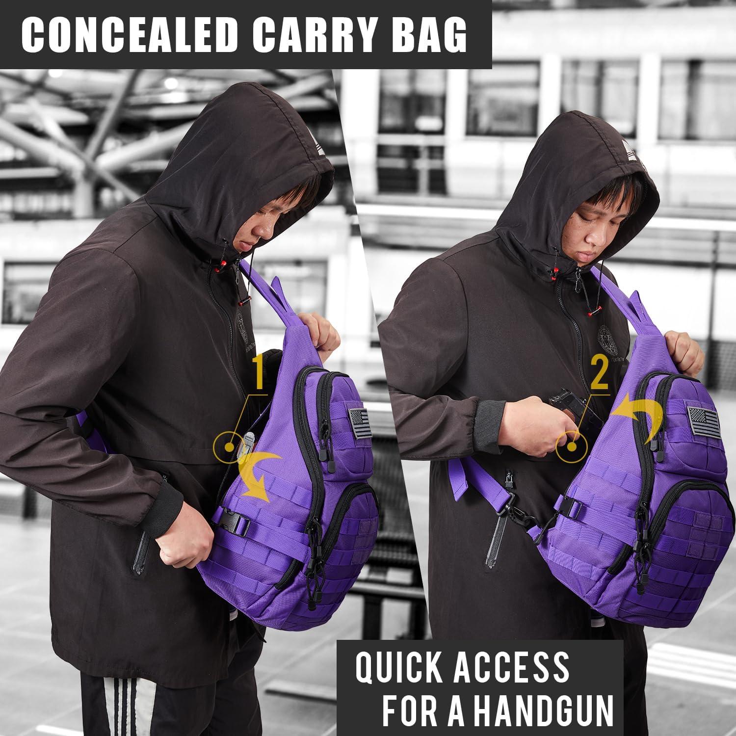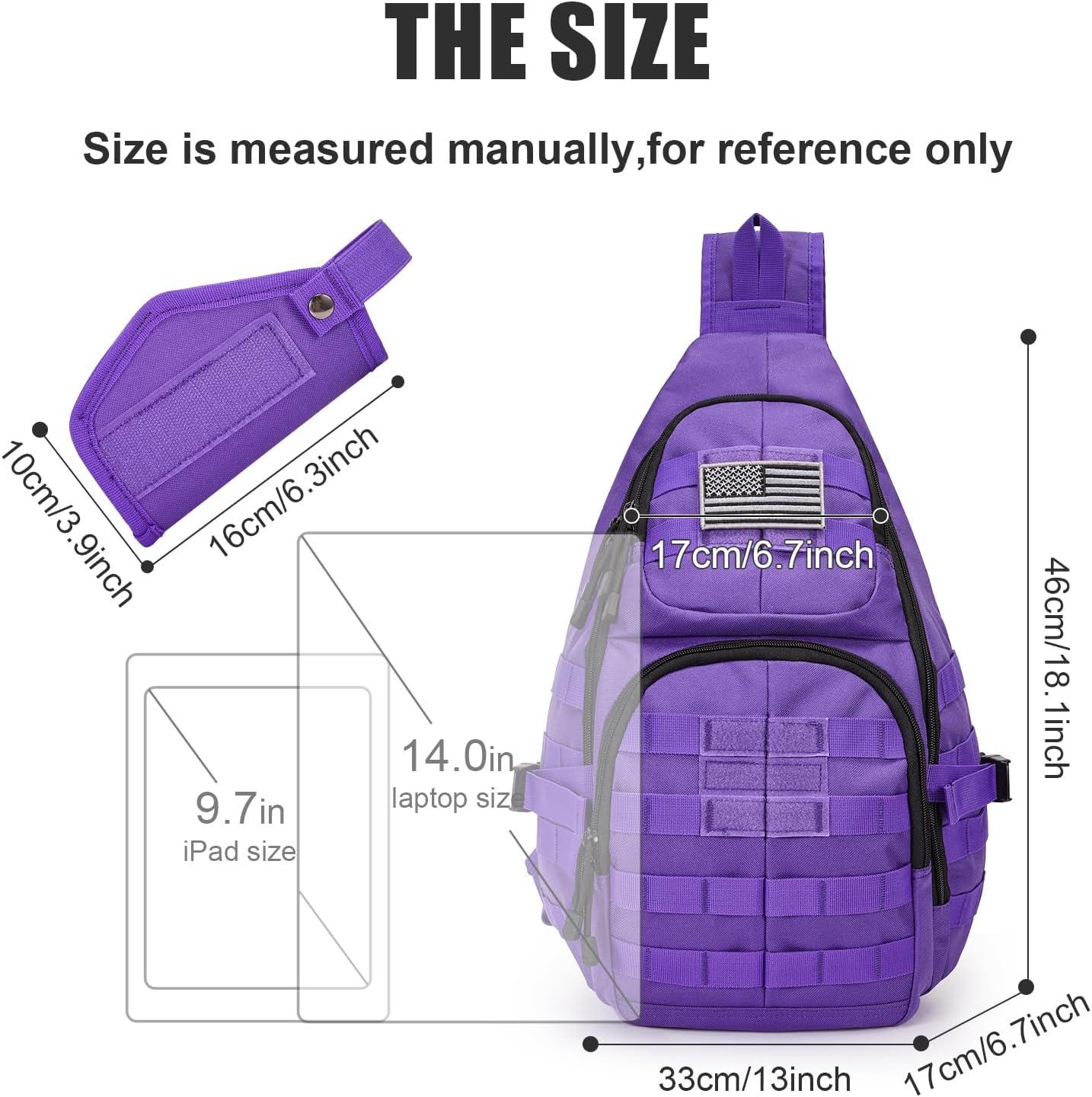G4Free Tactical EDC Sling Backpack, Military Rover Shoulder Sling Bag Pack with Pistol Holster for Concealed Carry(Purple)