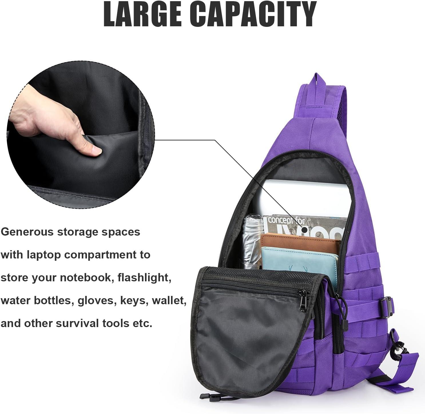 EDC CROSSBODY BACKPACK: With this sling bag, you will be able to swing around the chest to the front and remove items you need without taking the backpack off. A variety of outdoor activities are available, suitable for cycling, walking, walking dogs, daily travel, hiking, and commuting. Could be used as a chest bag, handbag, tactical assault pack, bug out backpack, and range bag.