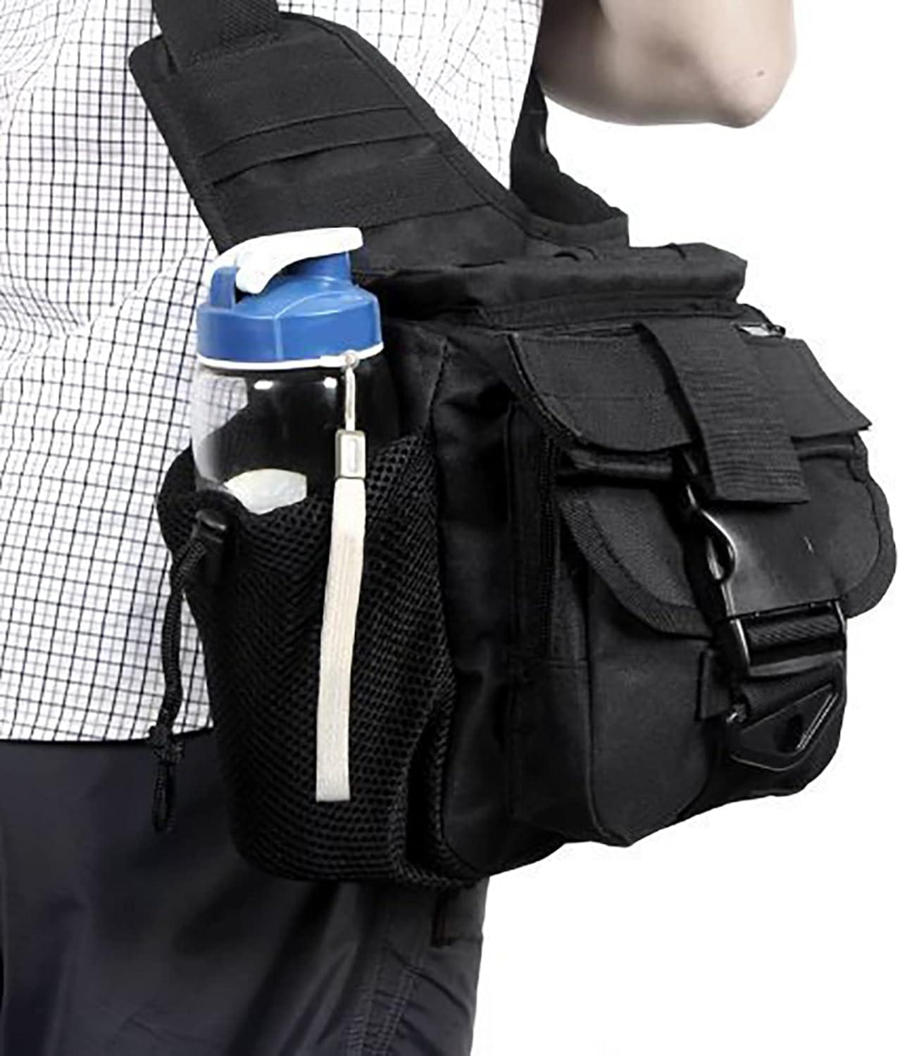 【【Multifunctional】TACTICAL GEAR, MAGAZINE POUCHES; Perfect as Range bag, Camera bag, Tactical assault bag, and other outdoor sports, such as fishing, hiking, mountaineering, cycling, camping. There is a water cup bag on the side, which will stop you from getting thirsty on the way.