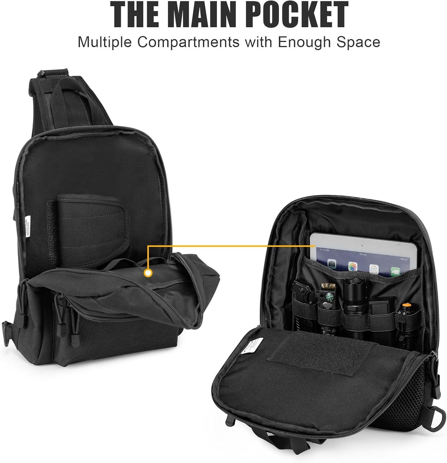 Comfortable Wear with Padded Back: The EDC bag is designed with a sponge-padded back panel, which makes it comfortable to wear. It can also protect the tablet stored in the main compartment.