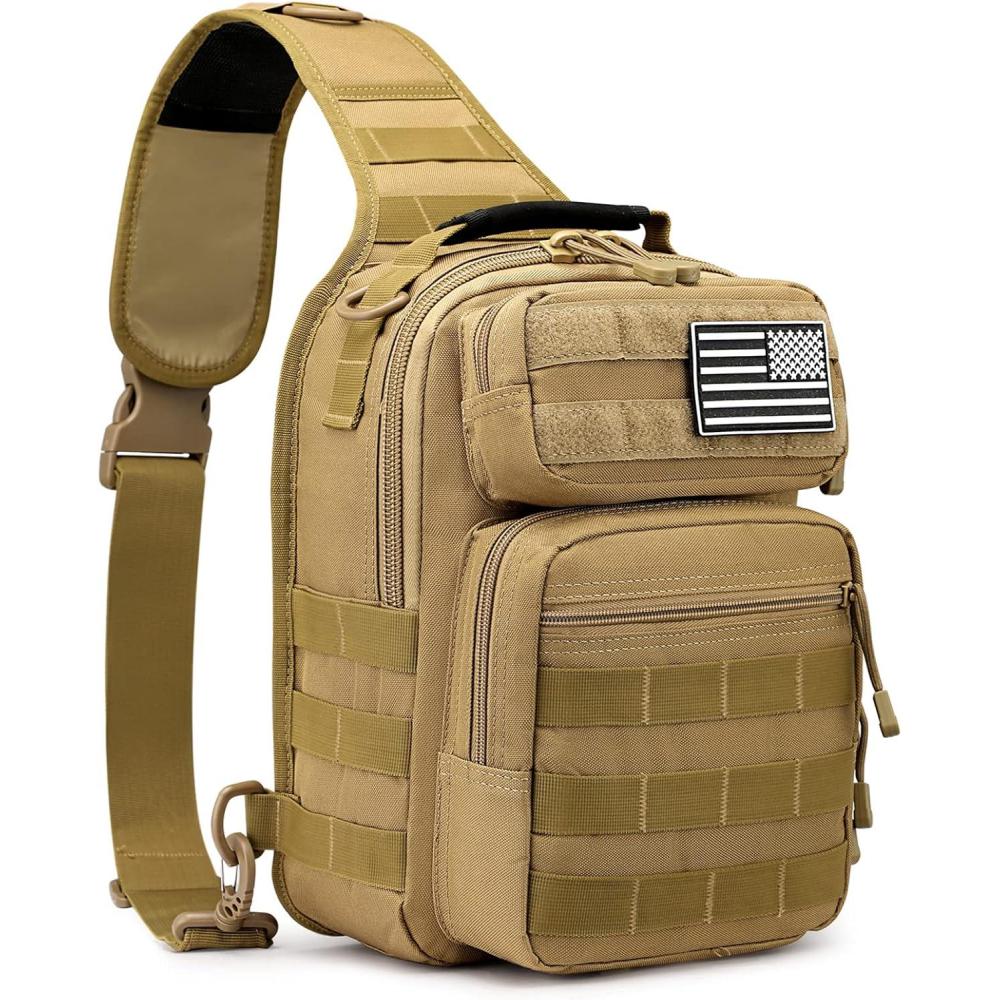 G4Free Tactical Sling Bag Backpack Military Rover Shoulder Sling Pack Molle EDC Small Crossbody Chest Pack(Tan)