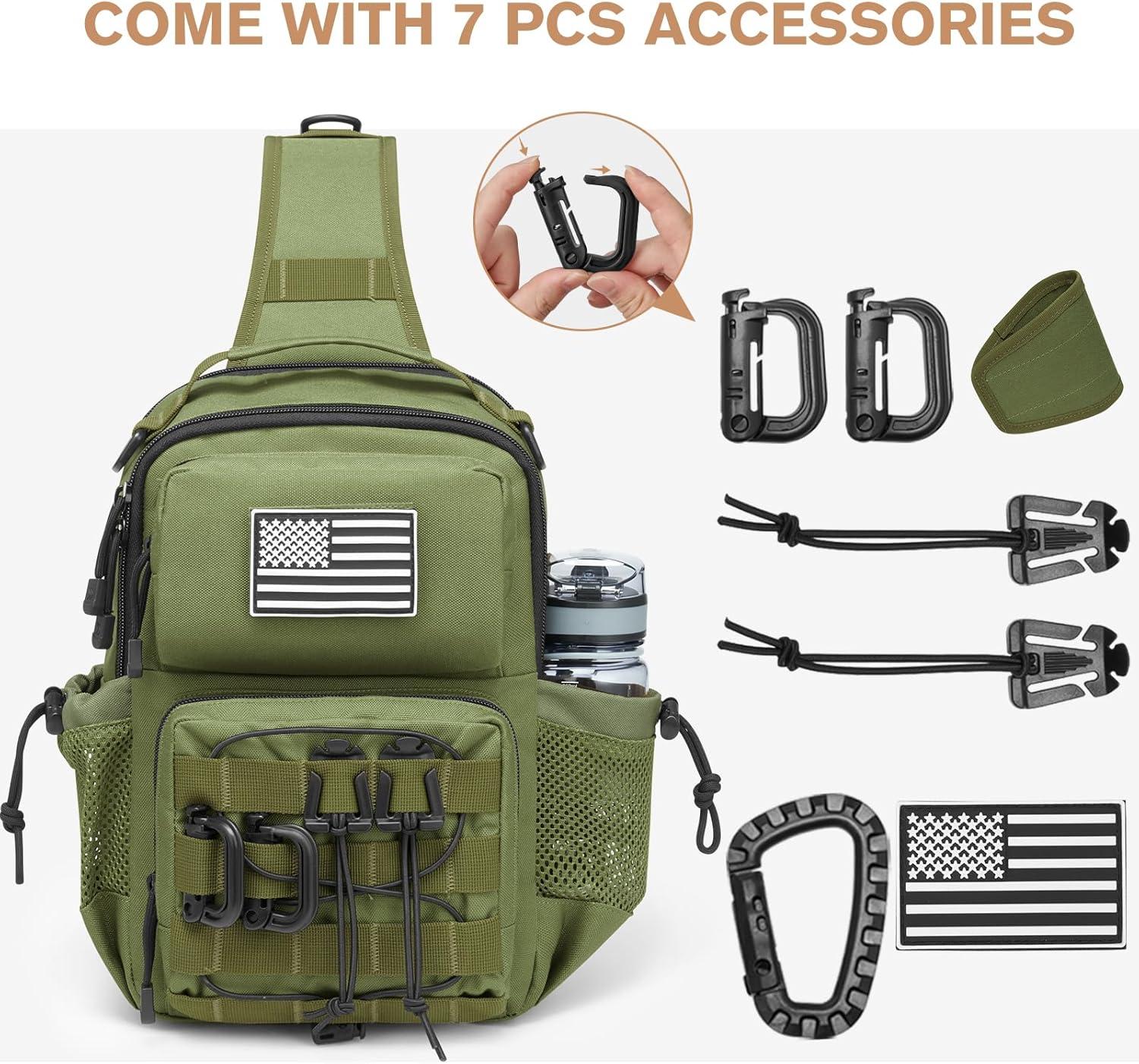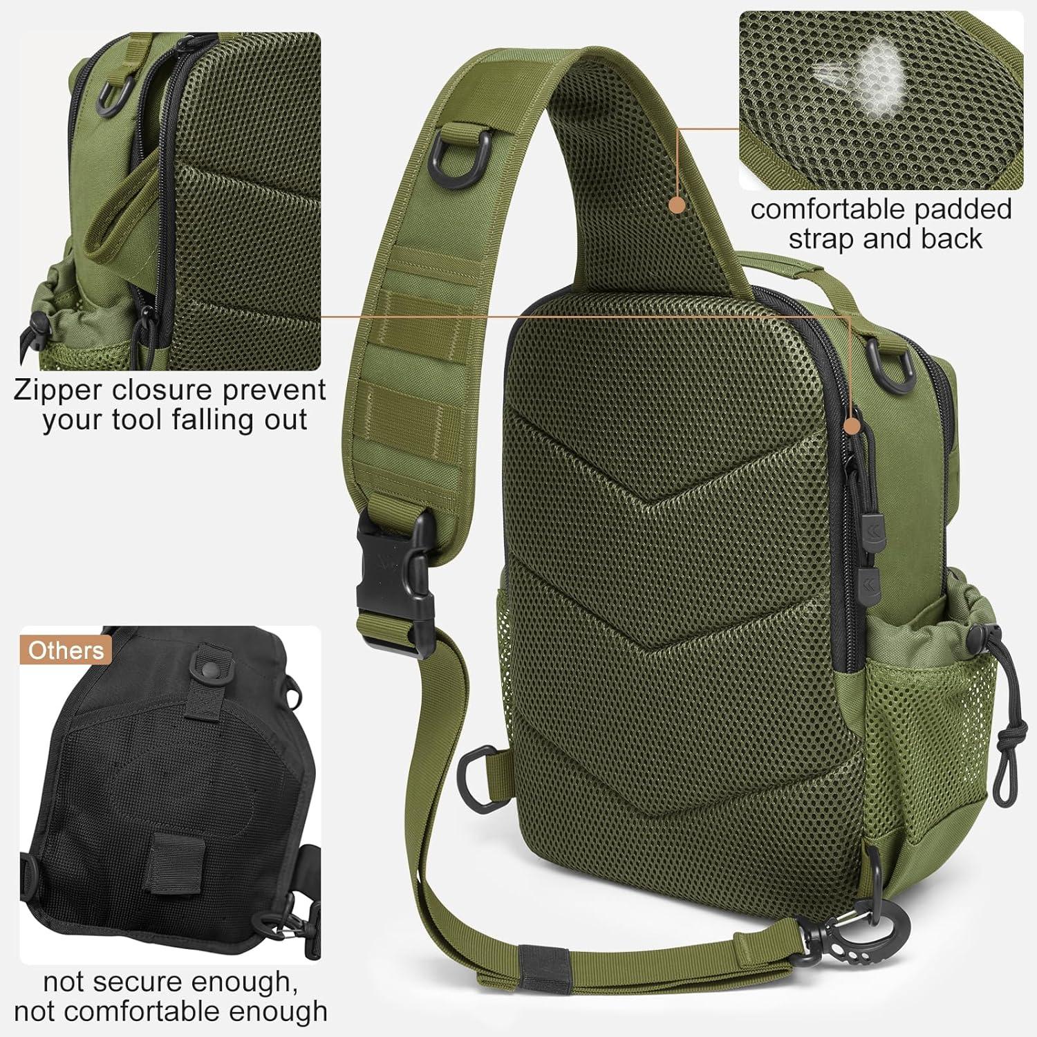 Versatile: With back sling, chest sling, or shoulder carry options, our tactical bag is the perfect daypack for men or women. Great for camping, hiking, hunting, sports events, tools, Etc. Good choice for a gift.