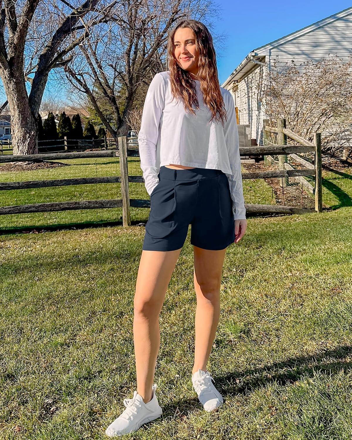 G4Free Trendy Shorts for Women Dressy Casual High Waisted Lounge Summer Pleated Shorts with Pockets(Navy)