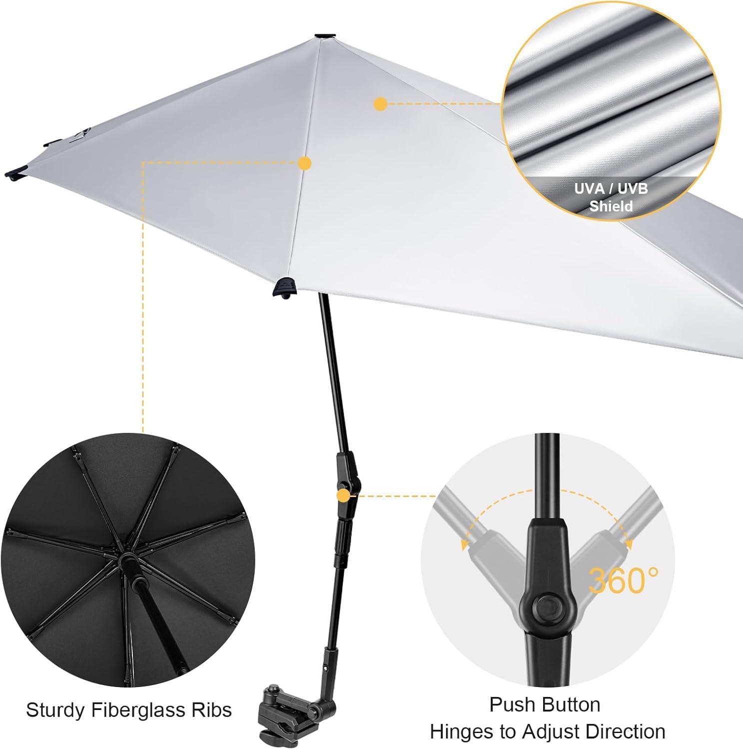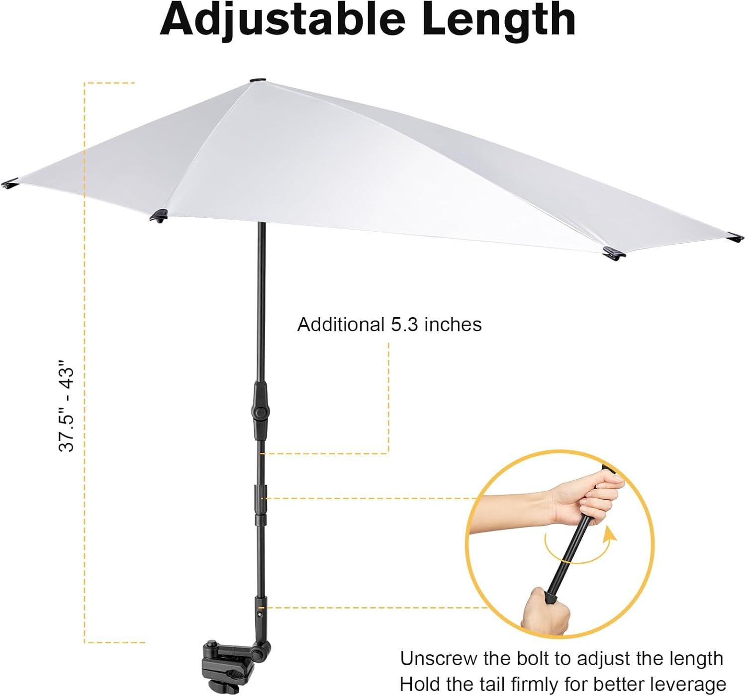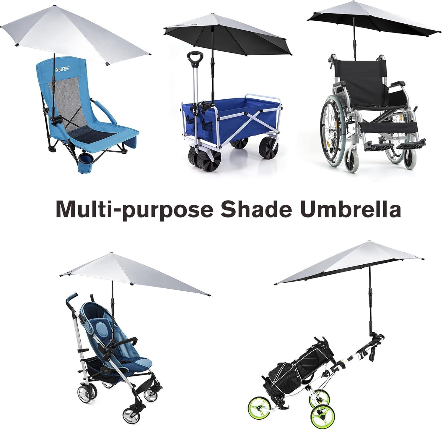 G4Free UPF 50+ Adjustable Chair Umbrella XL with Universal Clamp UV Protection Sun Shade Umbrella for Beach Chair, Stroller, Wheelchair, Golf Cart, Bleacher, Patio(Black)