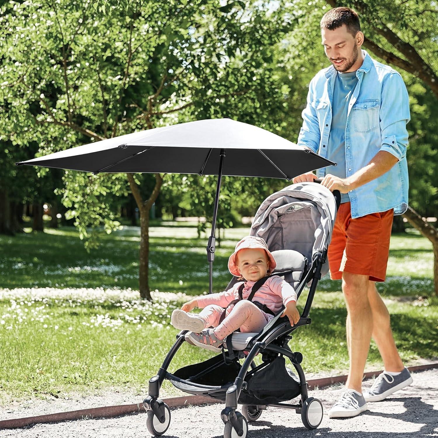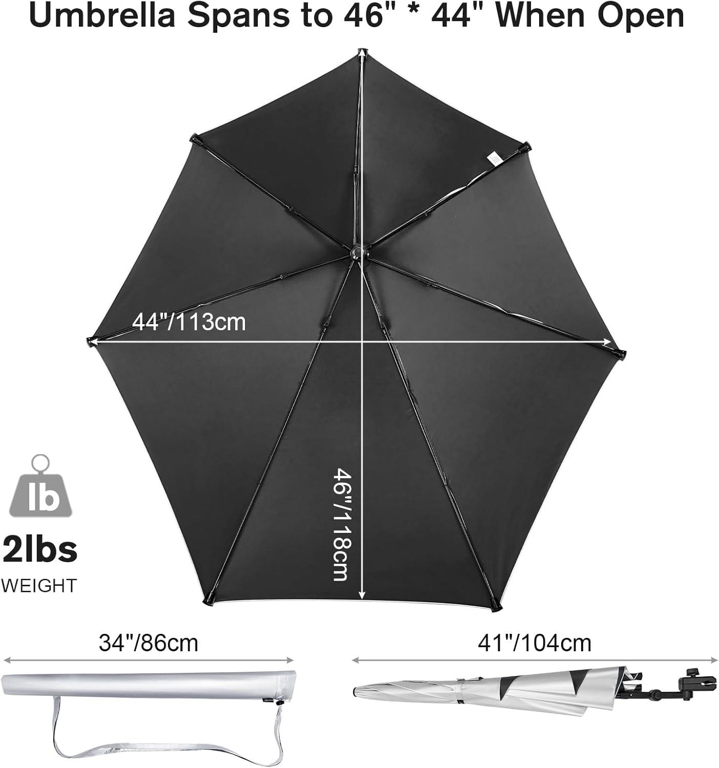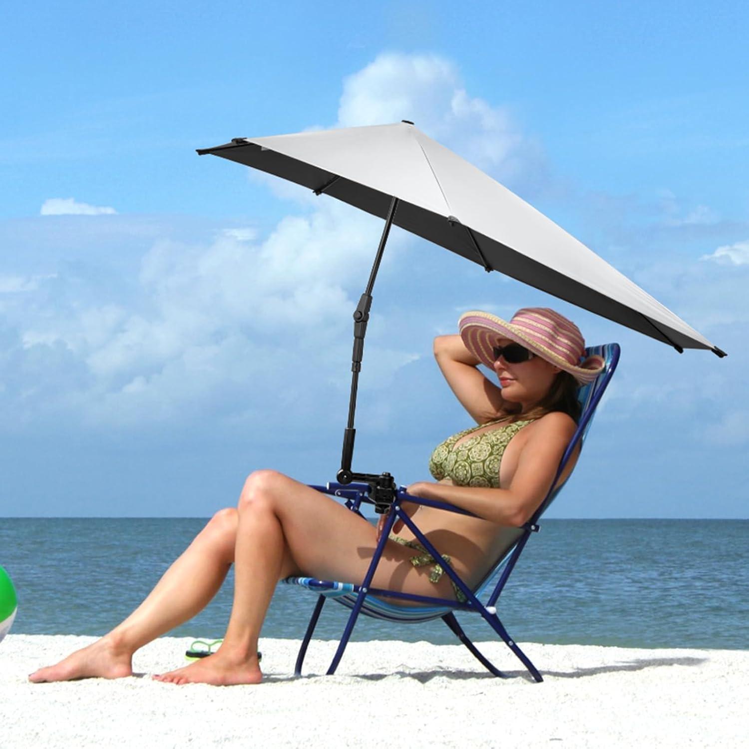 G4Free UPF 50+ Adjustable Chair Umbrella XL with Universal Clamp UV Protection Sun Shade Umbrella for Beach Chair, Stroller, Wheelchair, Golf Cart, Bleacher, Patio(Black)