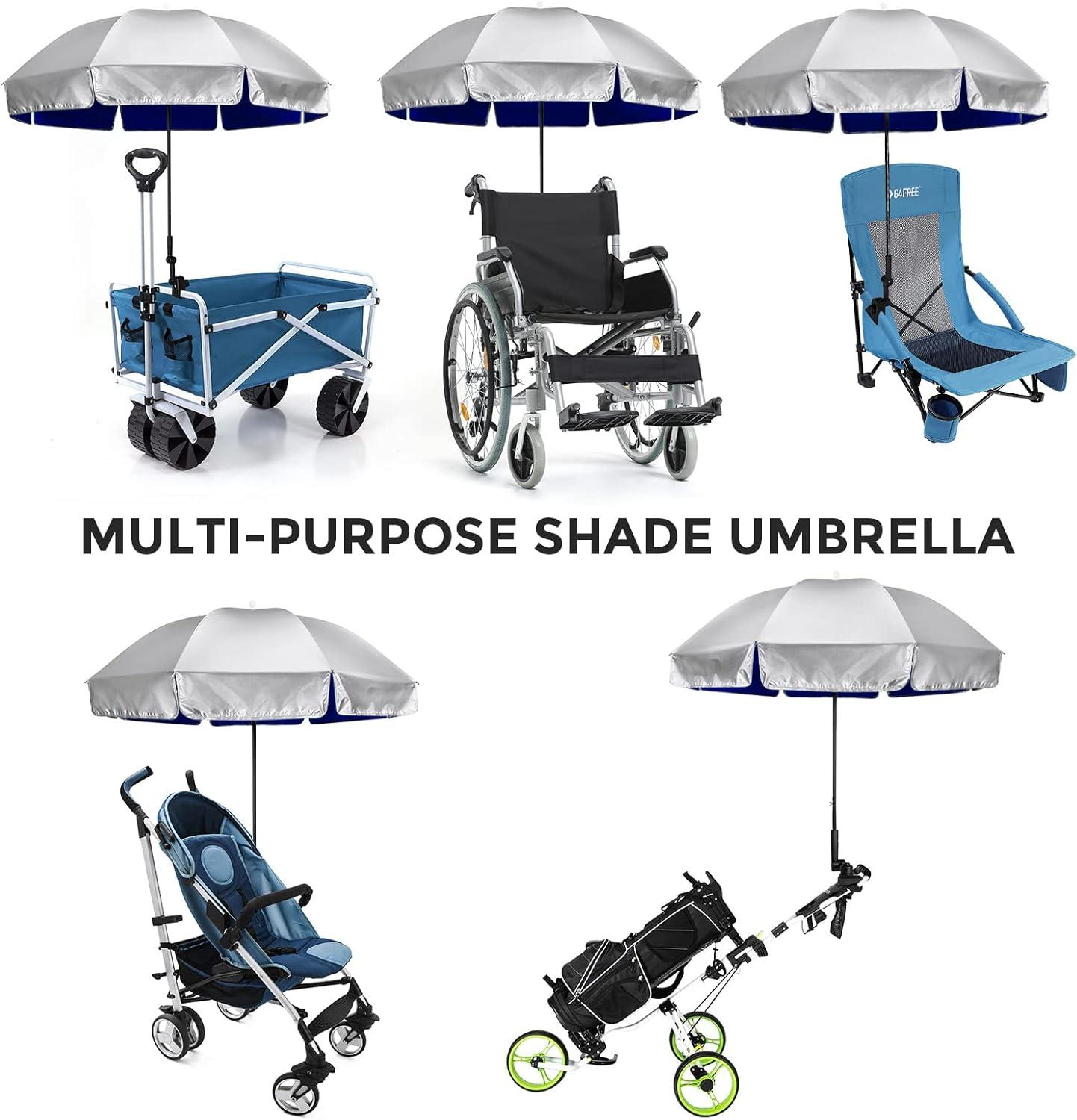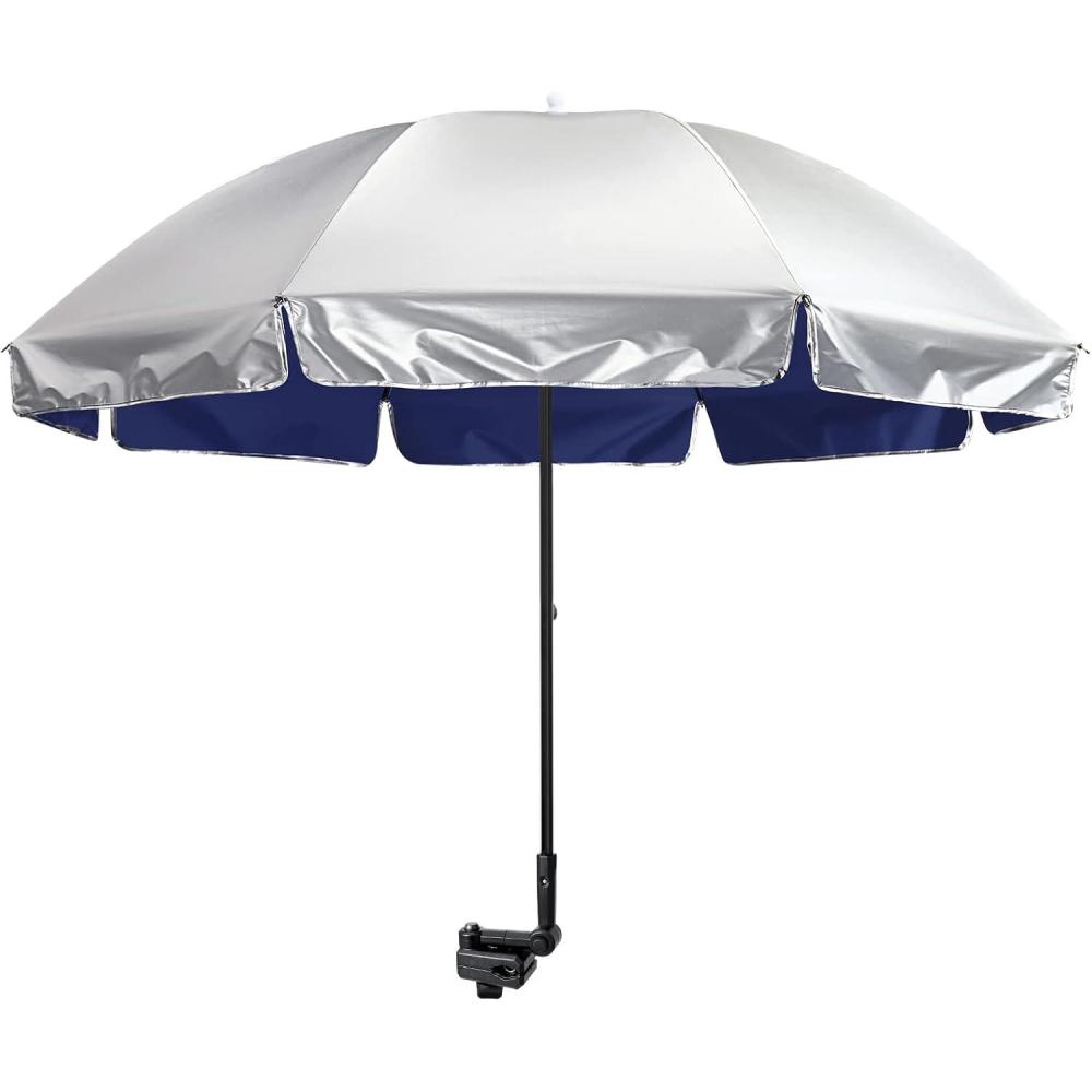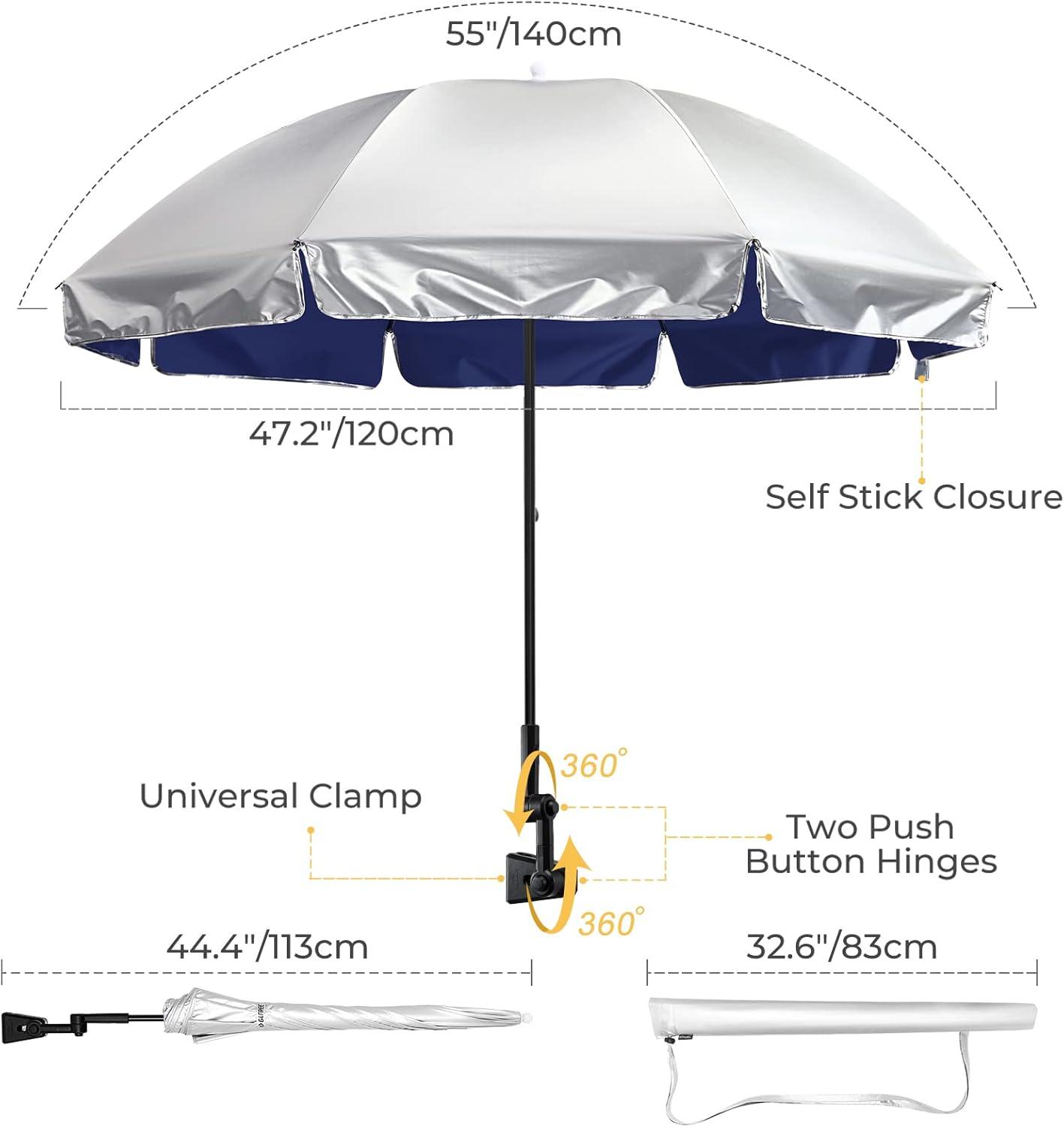 G4Free UPF 50+ Universal Clamp On Umbrella Adjustable Outdoor UV Protection Beach Chair Umbrella for Strollers, Wheelchairs, Patio Chairs, and Golf Carts(Blue)