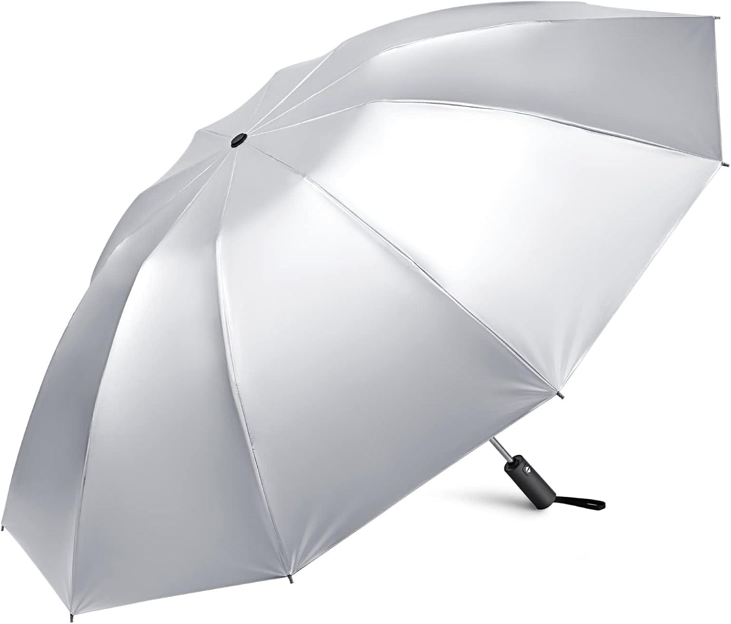 UPF 50+ Sun Umbrella: Silver coating layer fabric reflects heat to cool you down; UPF 50+ high UV rated blocking 99.9% of the harmful UVA and UVB solar rays, protects your skin in the sun. Keep you cool in the sun and safe in the rain.
