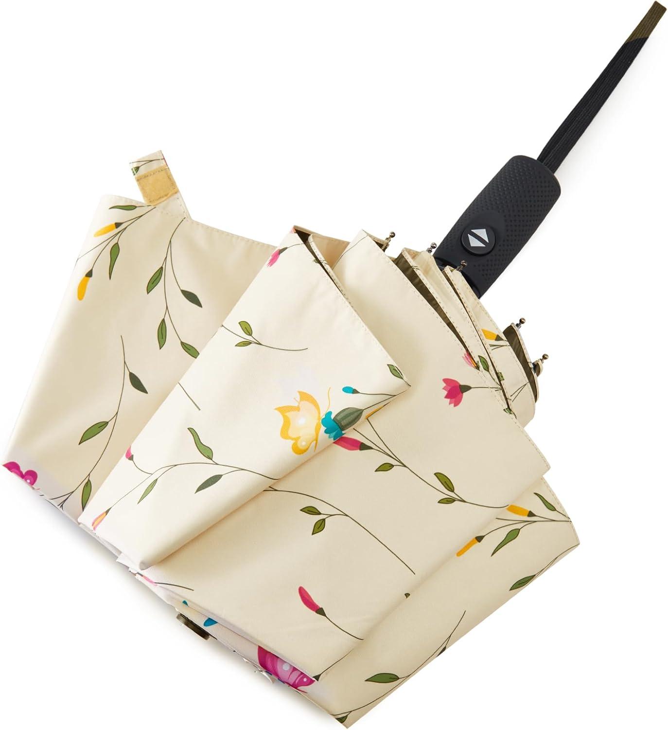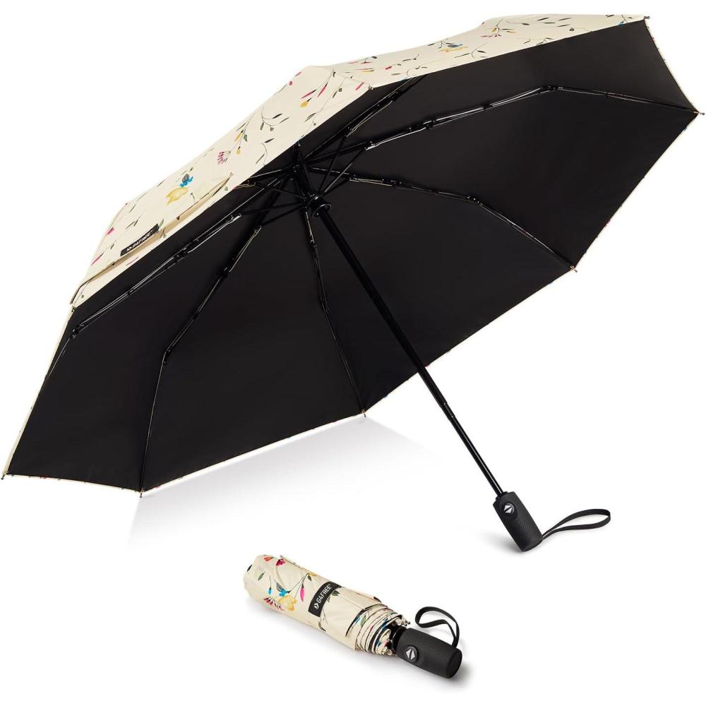 G4Free UPF 50+ UV Protection Large Travel Umbrella 42/46 Inch Auto Open Close Windproof Sun Blocking Umbrella(Flowers/Black)