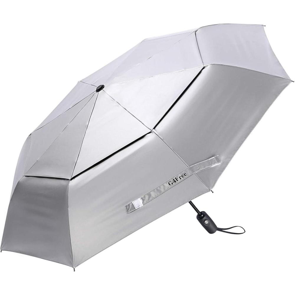 G4Free UPF 50+ UV Protection Travel Umbrella 42/46 Inch Windproof Silver Coating Sun Blocking Umbrella(Silver/Black)