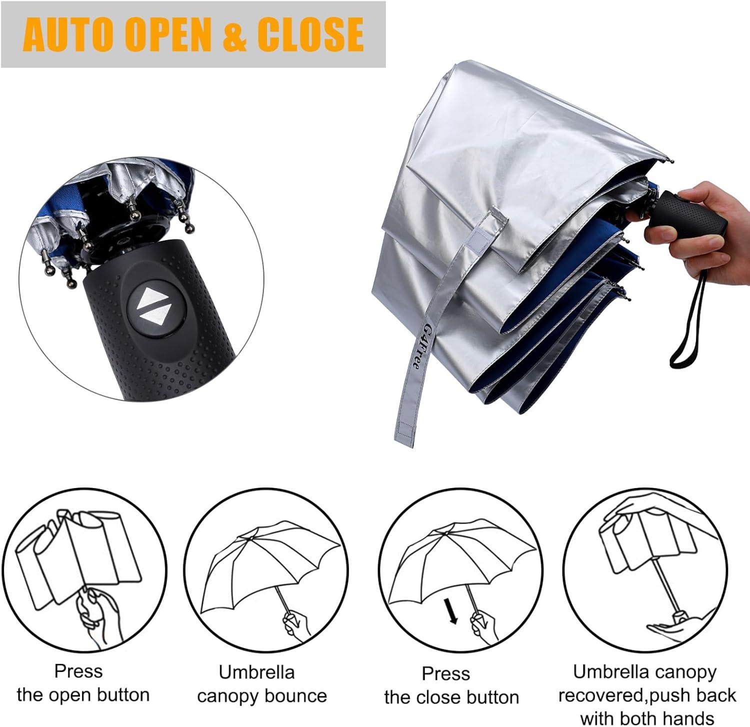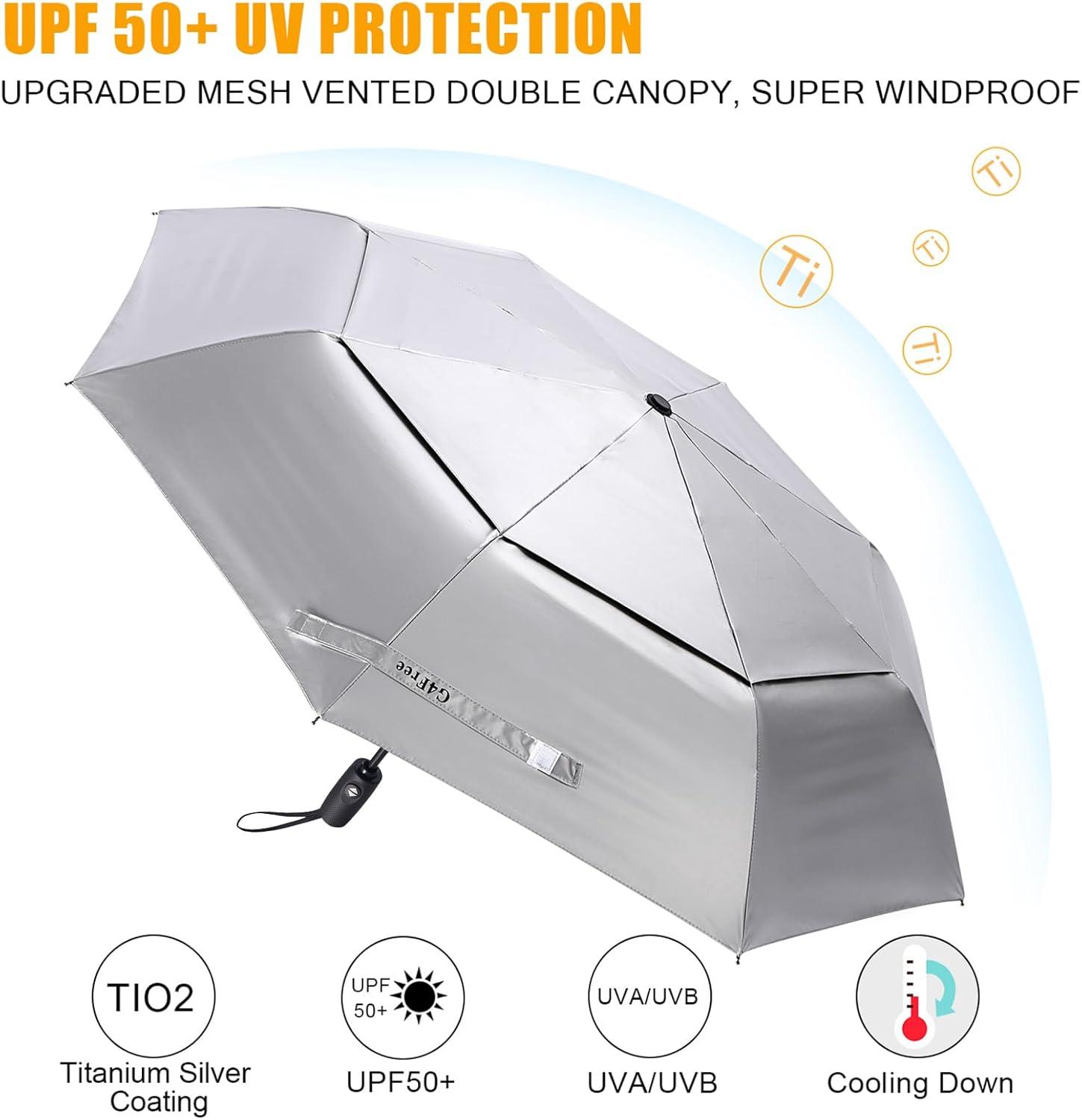 G4Free UPF 50+ UV Protection Travel Umbrella 42/46 Inch Windproof Silver Coating Sun Blocking Umbrella(Silver/Black)