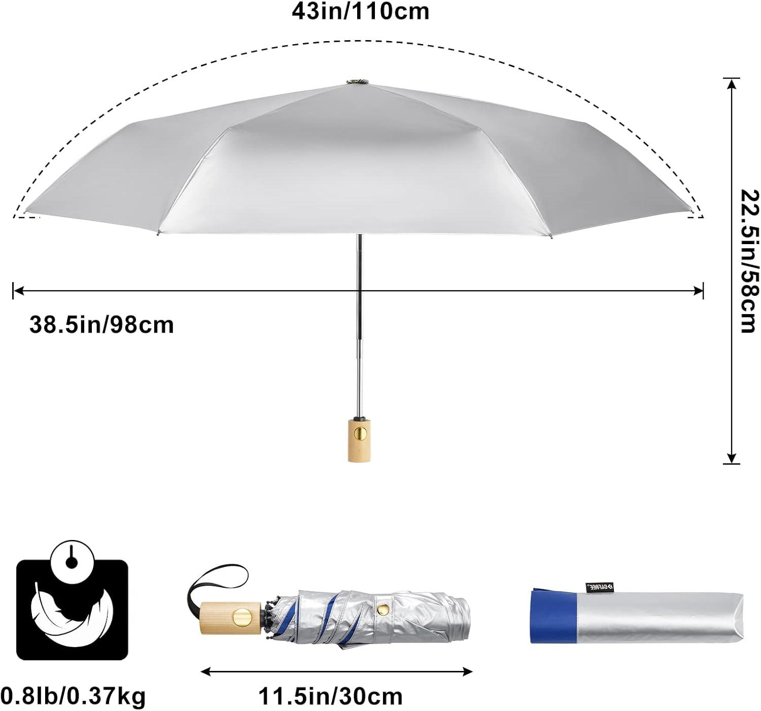 Compact Travel Size: This compact UV umbrella is 42 inch in arc canopy, 38.5 inch in diameter, and weighs 0.8lb. It can be folded to a small size to fit in a medium size purse and takes a small place. It is also lightweight and convenient to carry around.