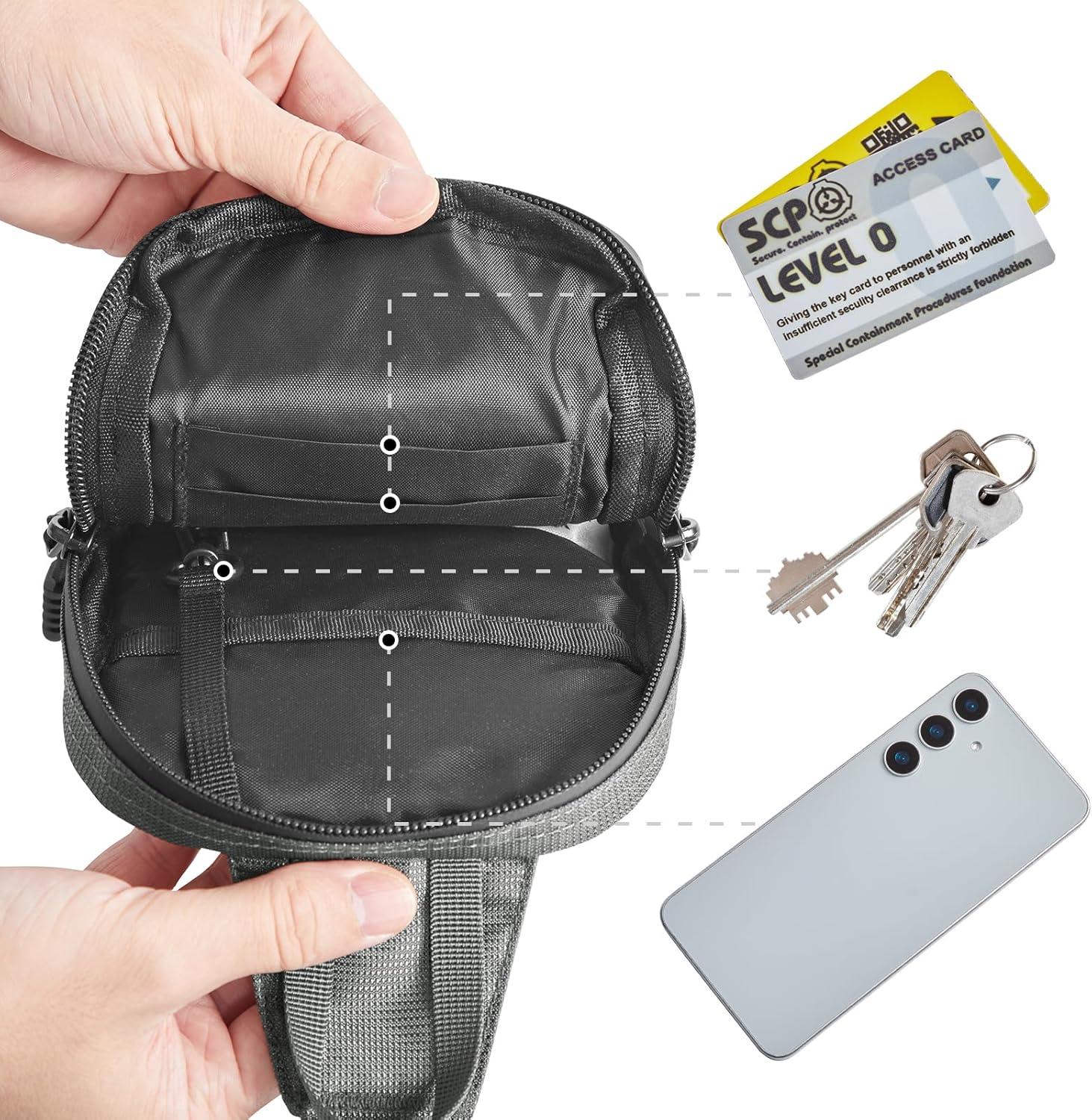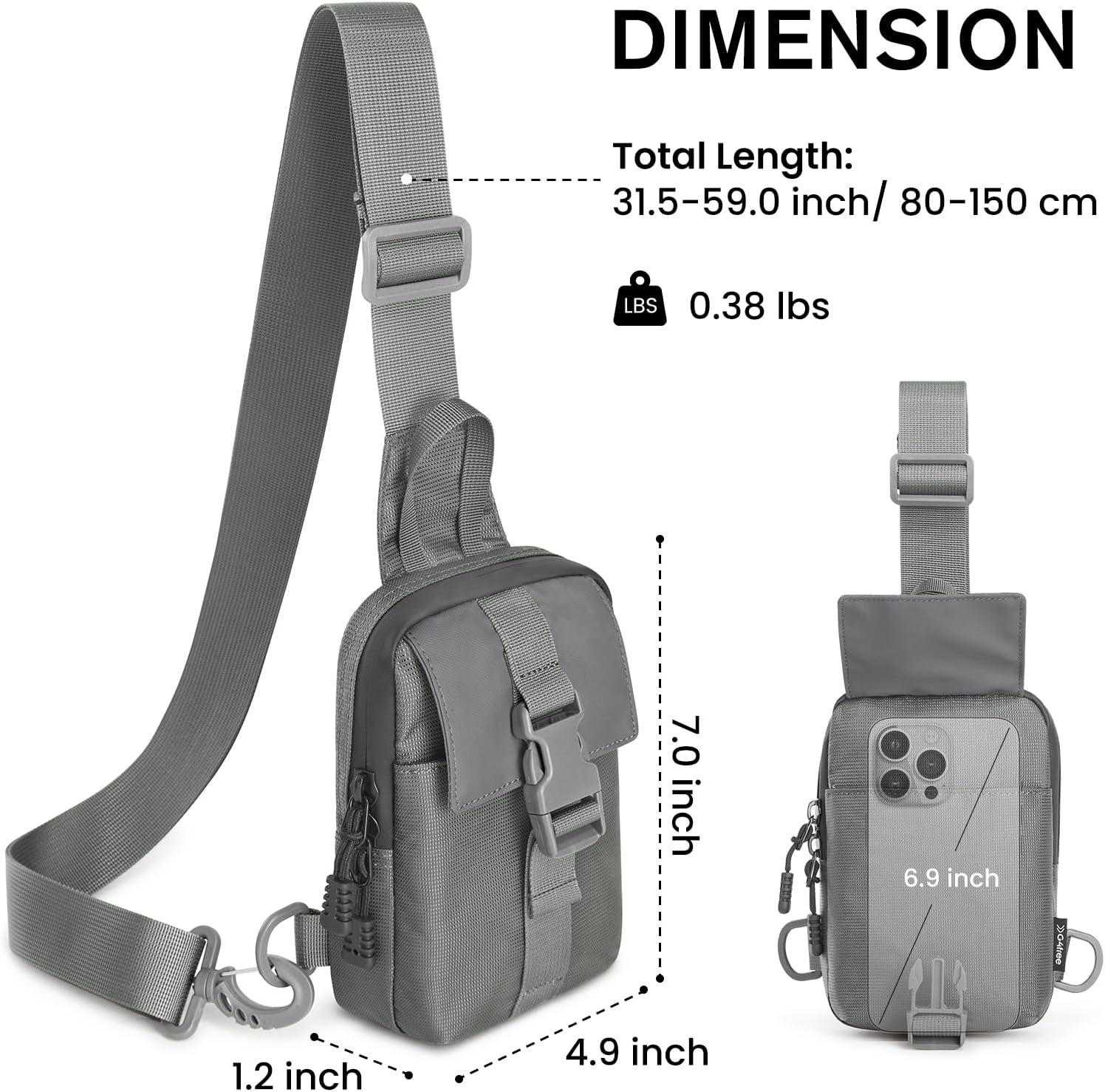 Mini & Lightweight:The EDC sling bag's size is 4.9 x 1.2 x 7 (L*W*H) inches, only 0.38 lbs. Perfect for relieving your travel burden