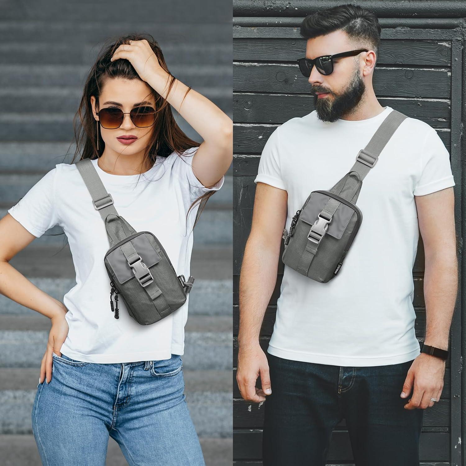 G4Free Waterproof Mini Crossbody Sling Bag, Small Chest Fanny Pack for Men, Lightweight Travel Sports Purse (Black)(Grey)