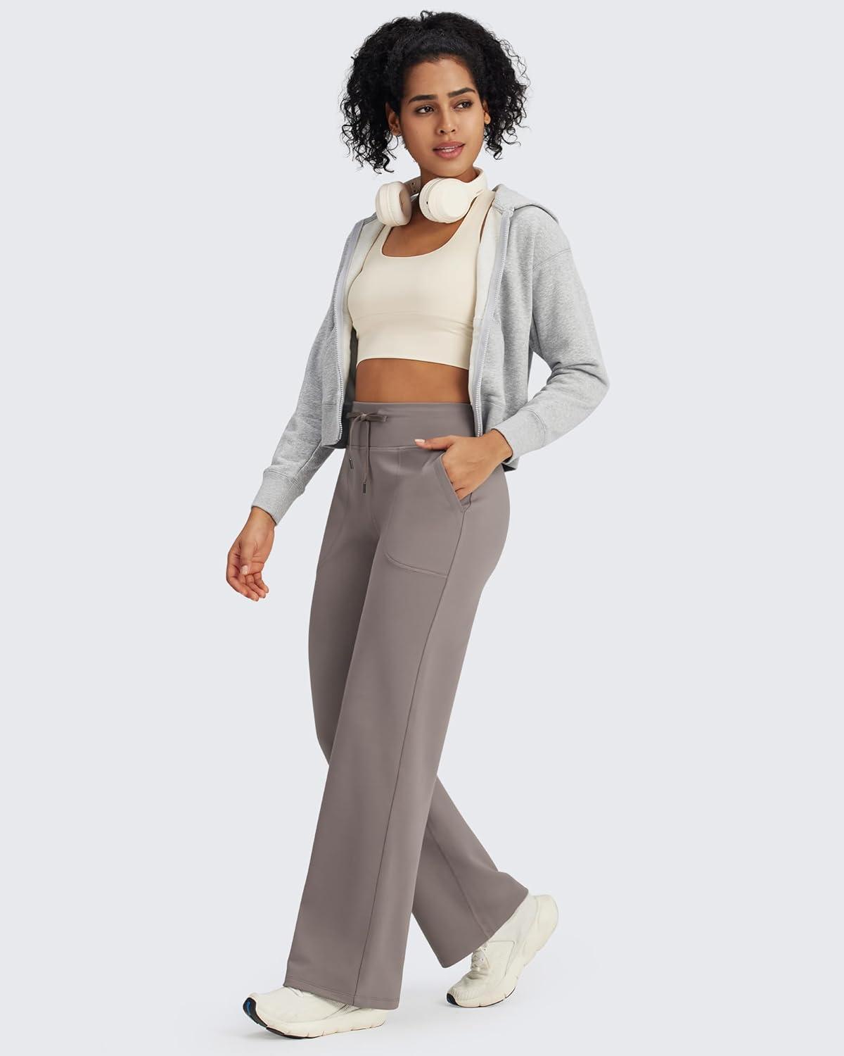 G4Free Wide Leg Fleece Lined Pants Women Drawstring Waist Winter Work Pants with Pockets for Casual Office(Taupe)