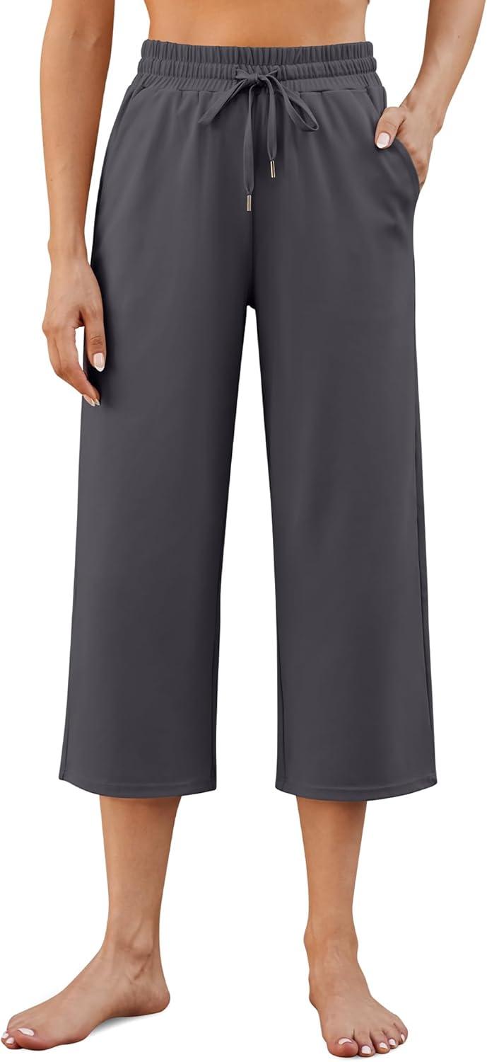 G4Free Wide Leg Pants for Women Yoga Capris with Pockets Drawstring Casual Cropped Pants for Summer(Deep Grey)