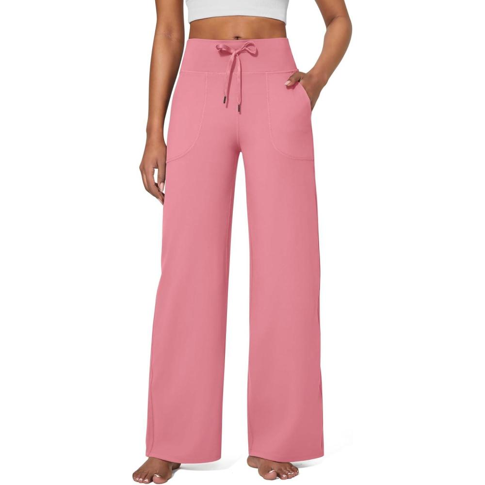 G4Free Wide Leg Pants for Women Yoga Pants High Waist Sweatpants with Pockets Stretch Lounge Pants Comfy Workout(Pink)