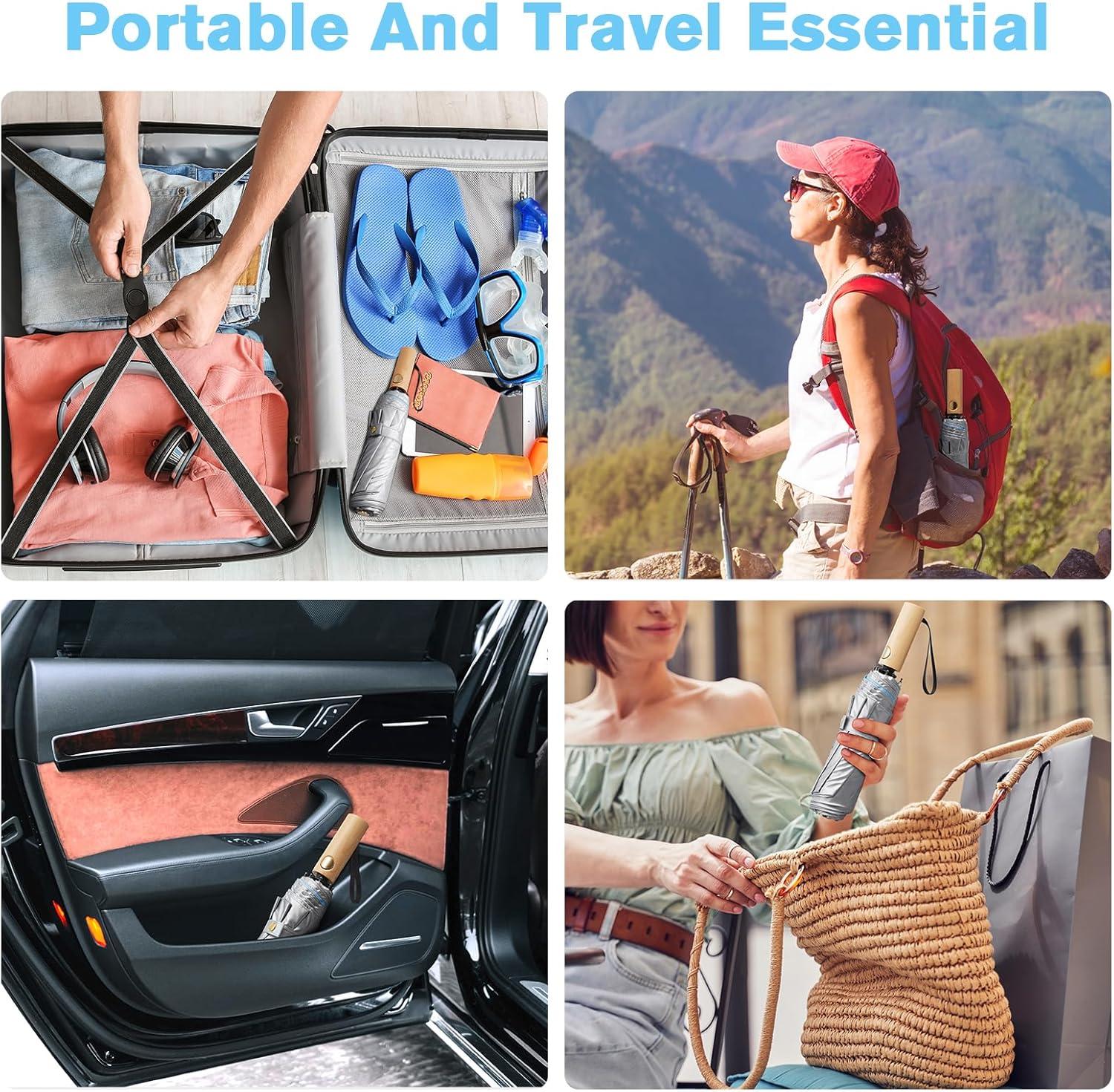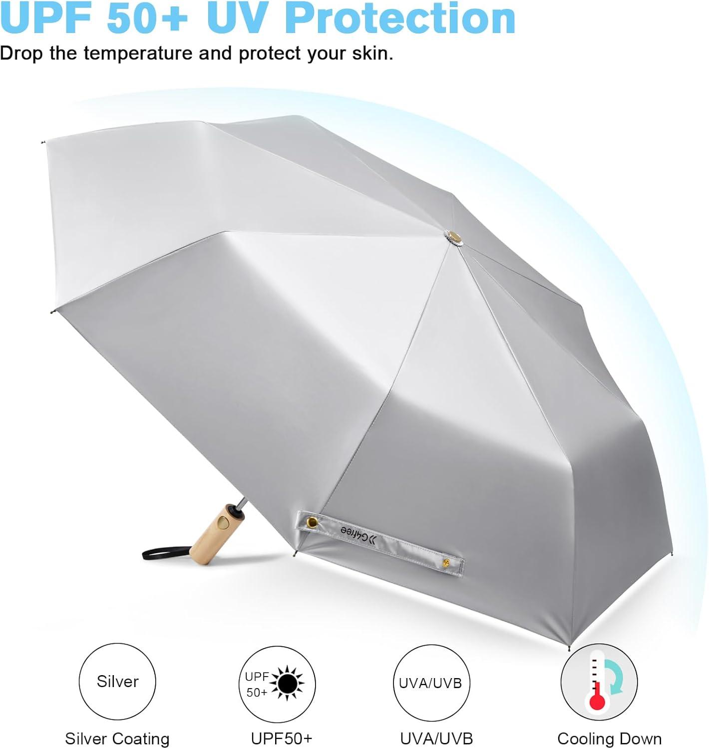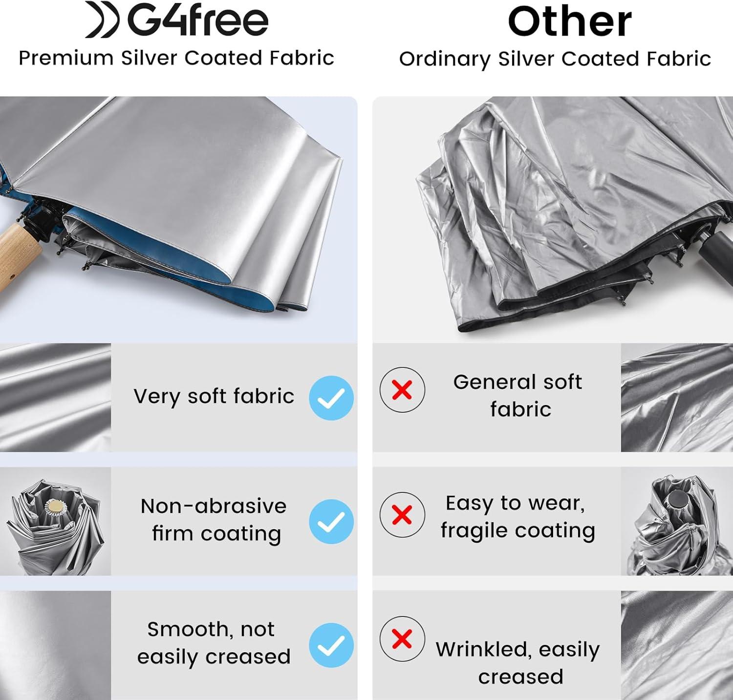 G4Free UPF 50+ UV Protection Travel Umbrella 42/46 Inch Windproof Silver Coating Sun Blocking Umbrella(Silver/Black)