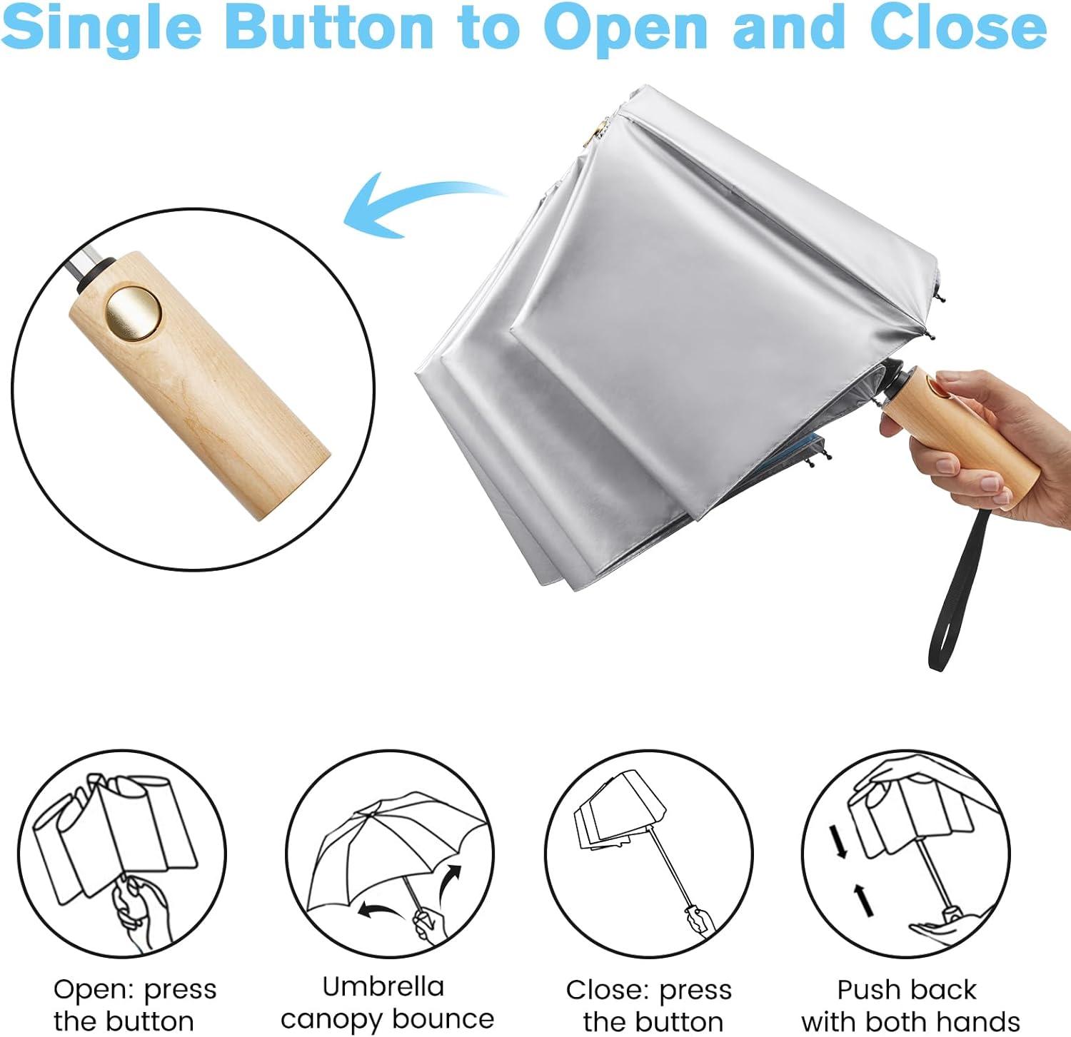 imageG4Free Windproof Travel Umbrella with Large Wooden Handle UV Sun Protection ampamp Rain Umbrella Automatic Open And Close Compact 46quot Large Canopy with UPF 50 Lightweight Portable for Walking ampamp OutdoorSilverSky