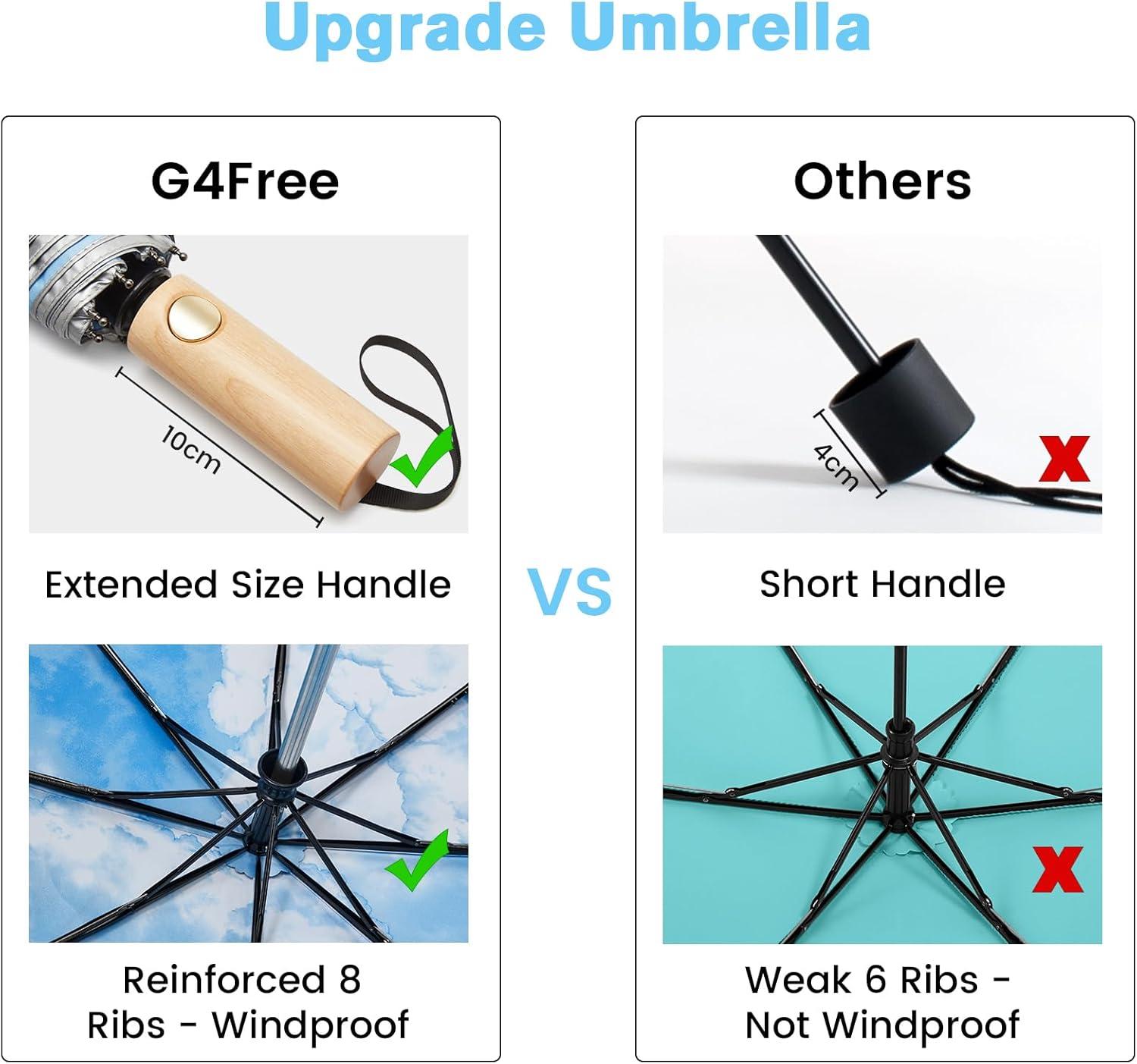 Be the first to review “G4Free Windproof Travel Umbrella with Large Wooden Handle, UV Sun Protection & Rain Umbrella Automatic Open And Close, Compact 46″ Large Canopy with UPF 50+, Lightweight Portable for Walking & Outdoor(Silver/Sky)”