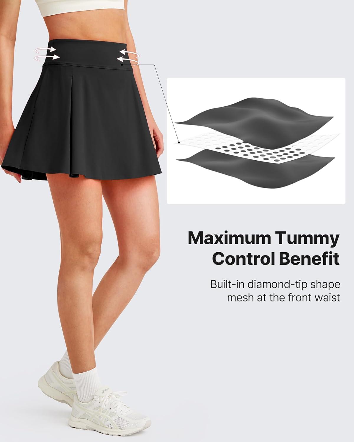 G4Free Women Tennis Skirts Athletic High Waisted Golf Skorts with 4 Pockets Inner Shorts for Pickleball Workout(Black)