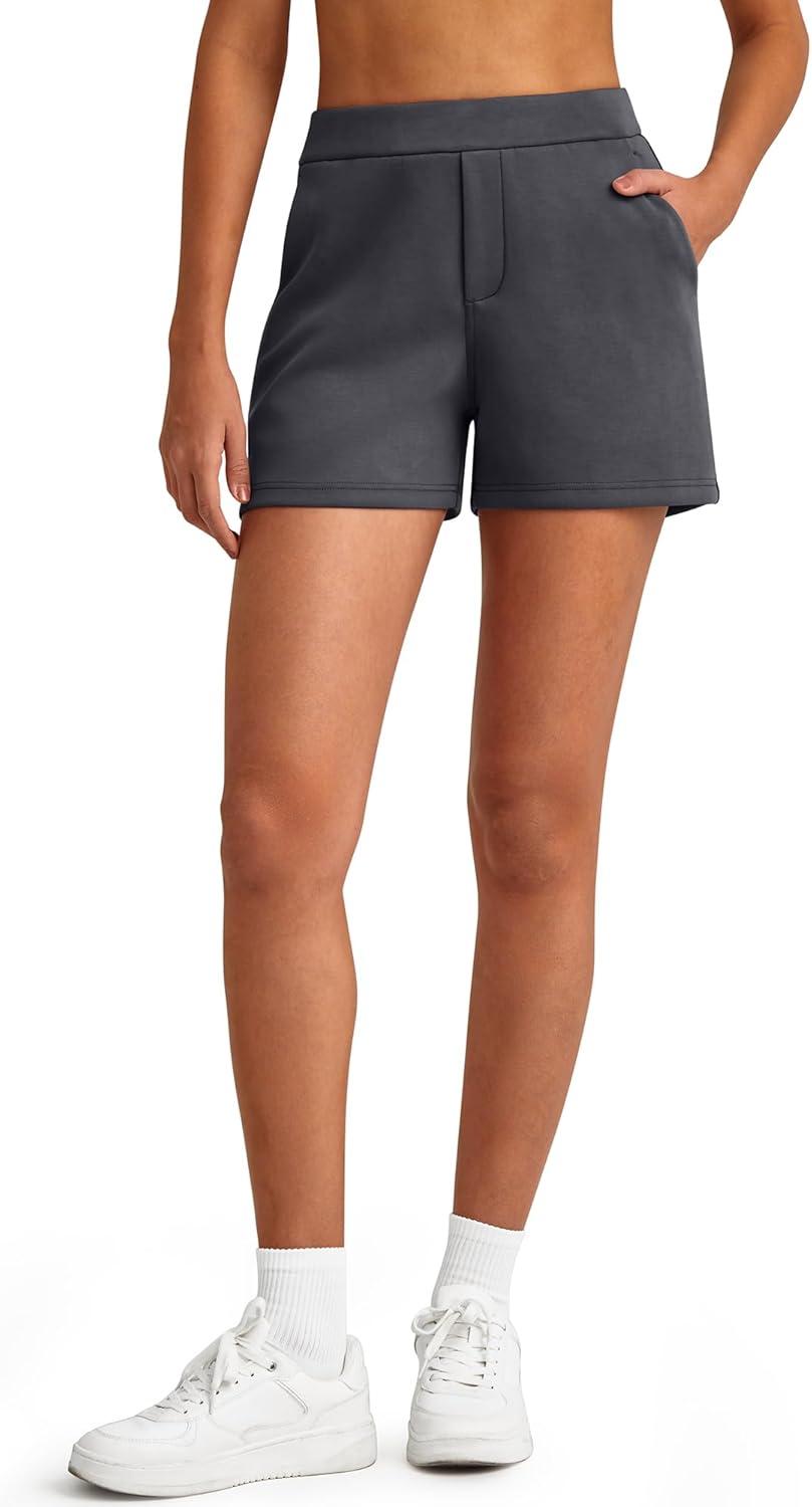 G4Free Women's 4'' Athletic Shorts Elastic High Waisted Workout Running Shorts Summer Casual Shorts with Pockets(Deep Grey)
