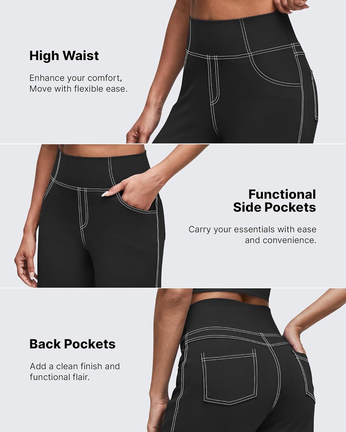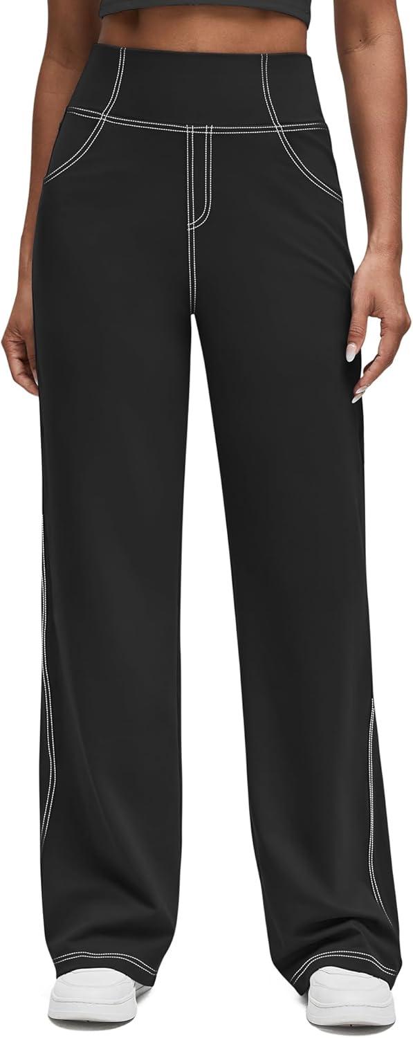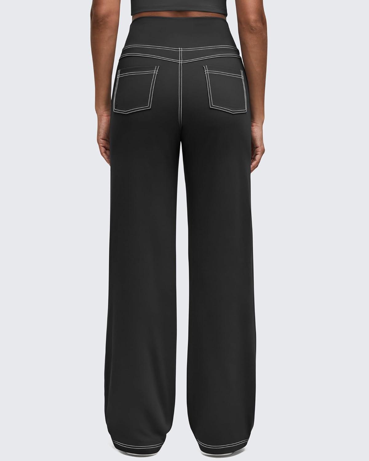 G4Free Women’s EverGoing Wide Leg Pants Casual High Waisted Yoga Pants with 4 Pockets Stretch(Black)