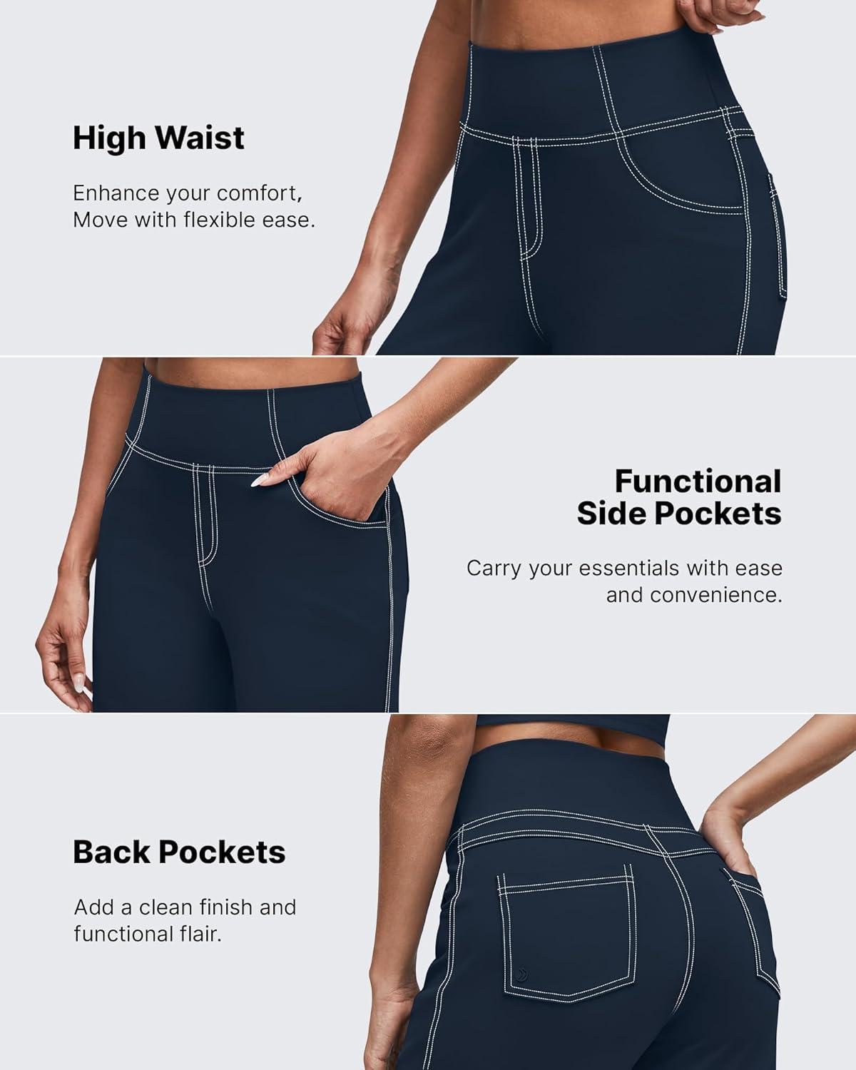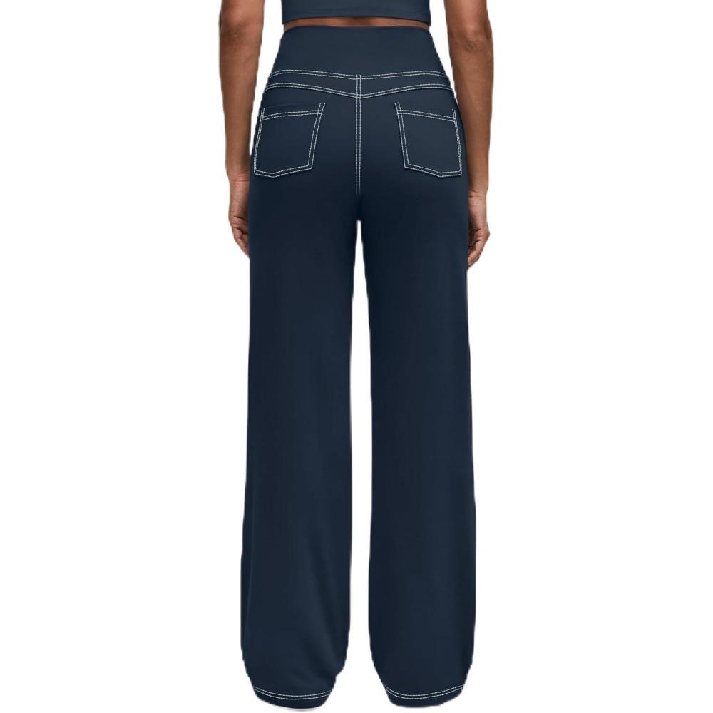 G4Free Women’s EverGoing Wide Leg Pants Casual High Waisted Yoga Pants with 4 Pockets Stretch(Dark Navy)