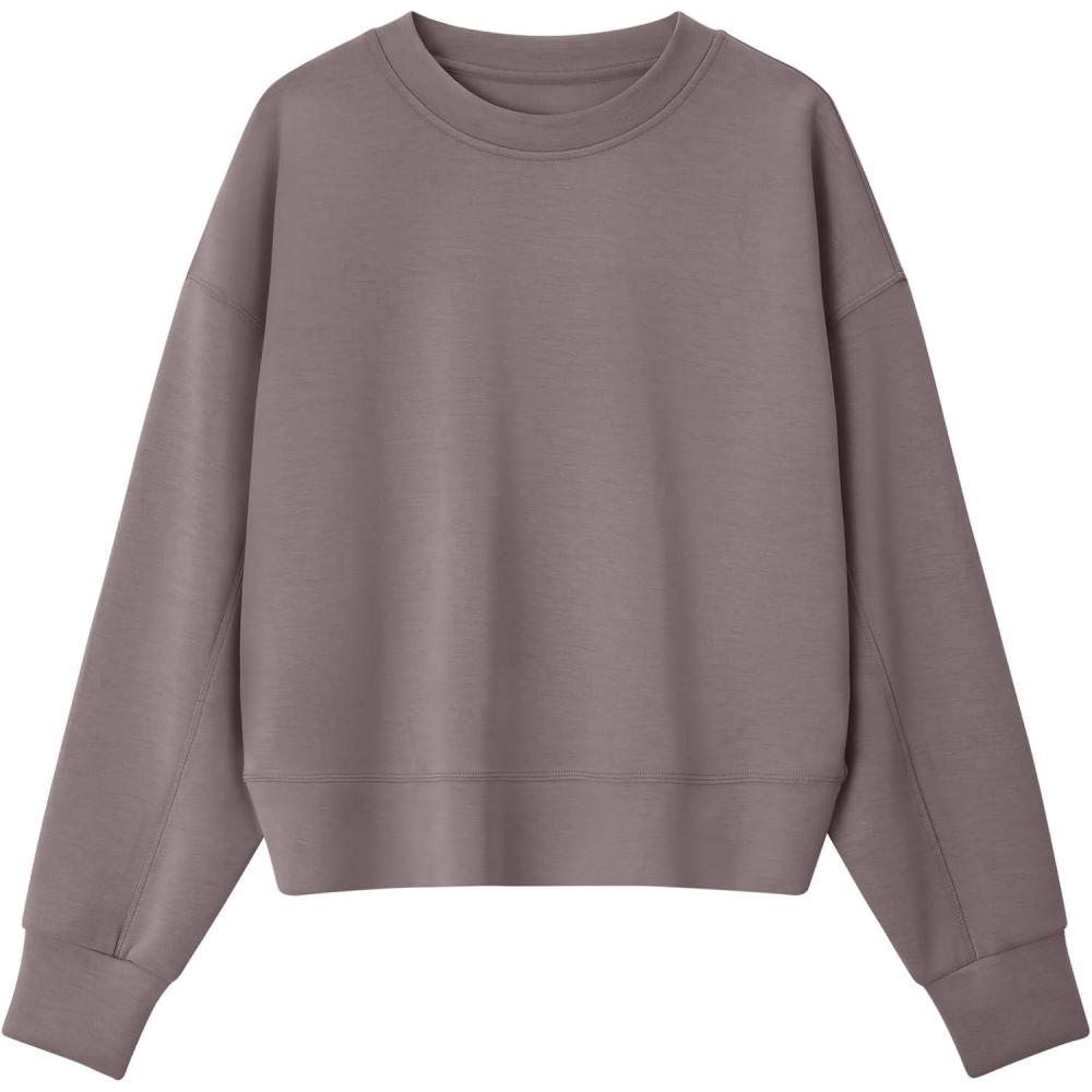 imageG4Free Womens Long Sleeve Crew Neck Pullover Sweatshirts Loose Fit Casual Plain Tops Junior Fall Winter Clothes TapueXXL