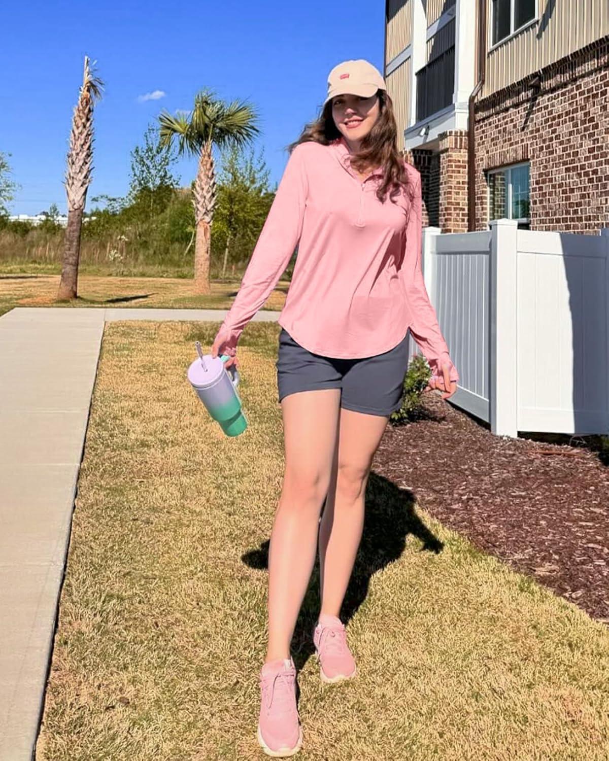 G4Free Womens UPF 50+ Sun Shirts Lightweight Quick Dry Long Sleeve Workout Tops Lightweight Running Pullover(Pink)