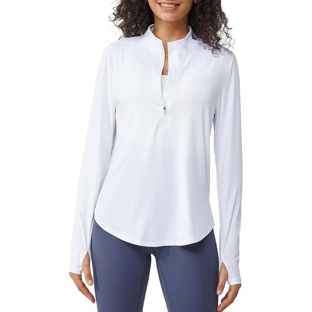 G4Free Womens UPF 50+ Sun Shirts Lightweight Quick Dry Long Sleeve Workout Tops Lightweight Running Pullover(White)