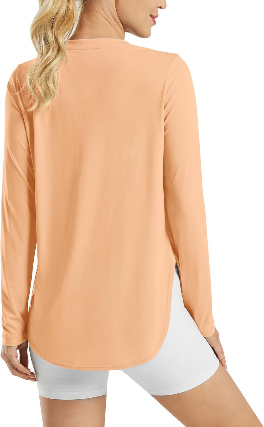 G4Free Women’s UPF 50+ UV Shirts Long Sleeve Workout Sun Shirt Outdoor Gym Hiking Tops Quick Dry Lightweight(Peach Nectar)