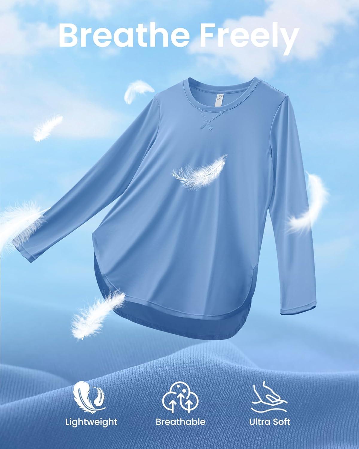 G4Free Women’s UPF 50+ UV Shirts Long Sleeve Workout Sun Shirt Outdoor Gym Hiking Tops Quick Dry Lightweight(Smog Blue)
