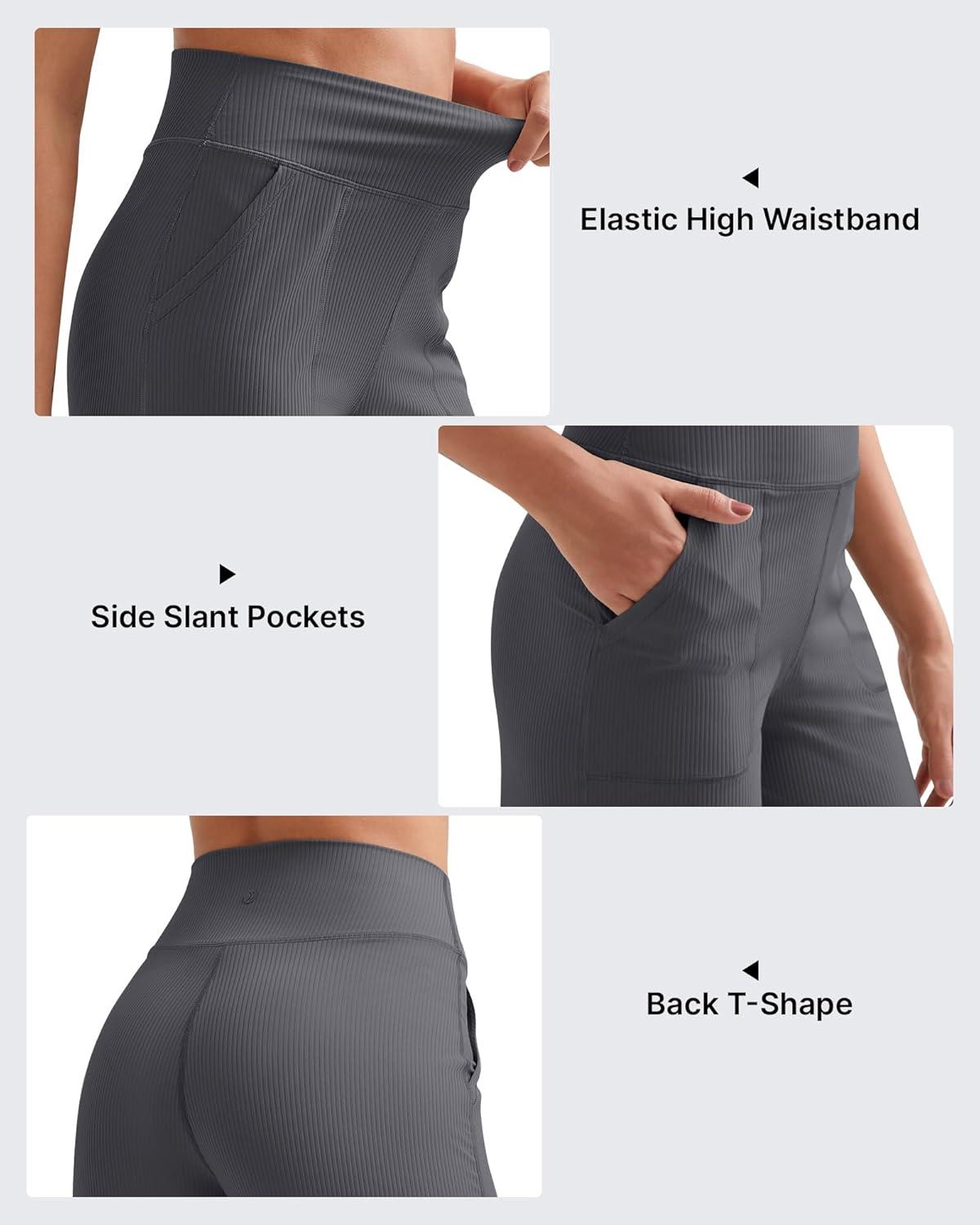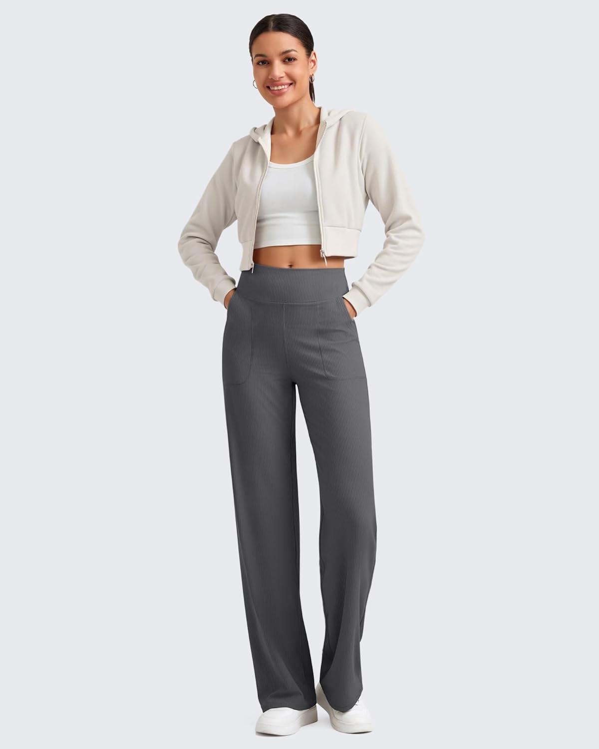 G4Free Womne's Ribbed Knit Wide Leg Pants with Pockets Lightweight Stretchy Yoga Pants Casual Lounge(Dark Gray)