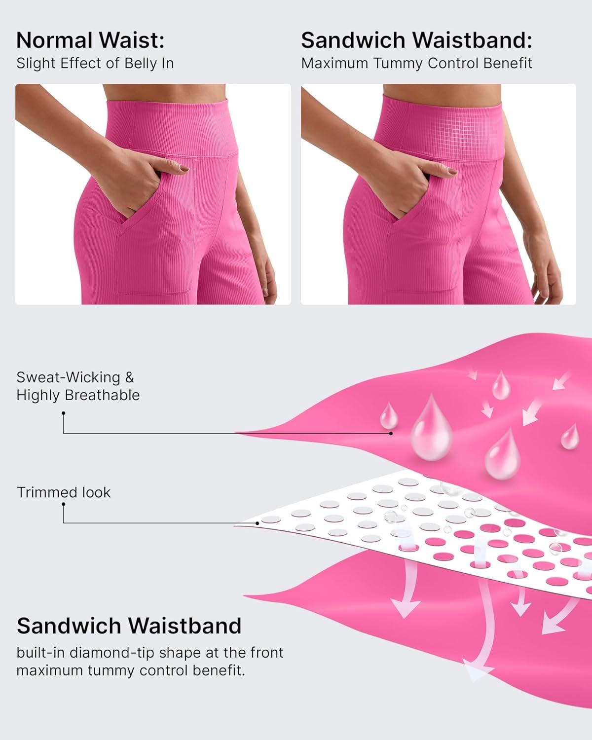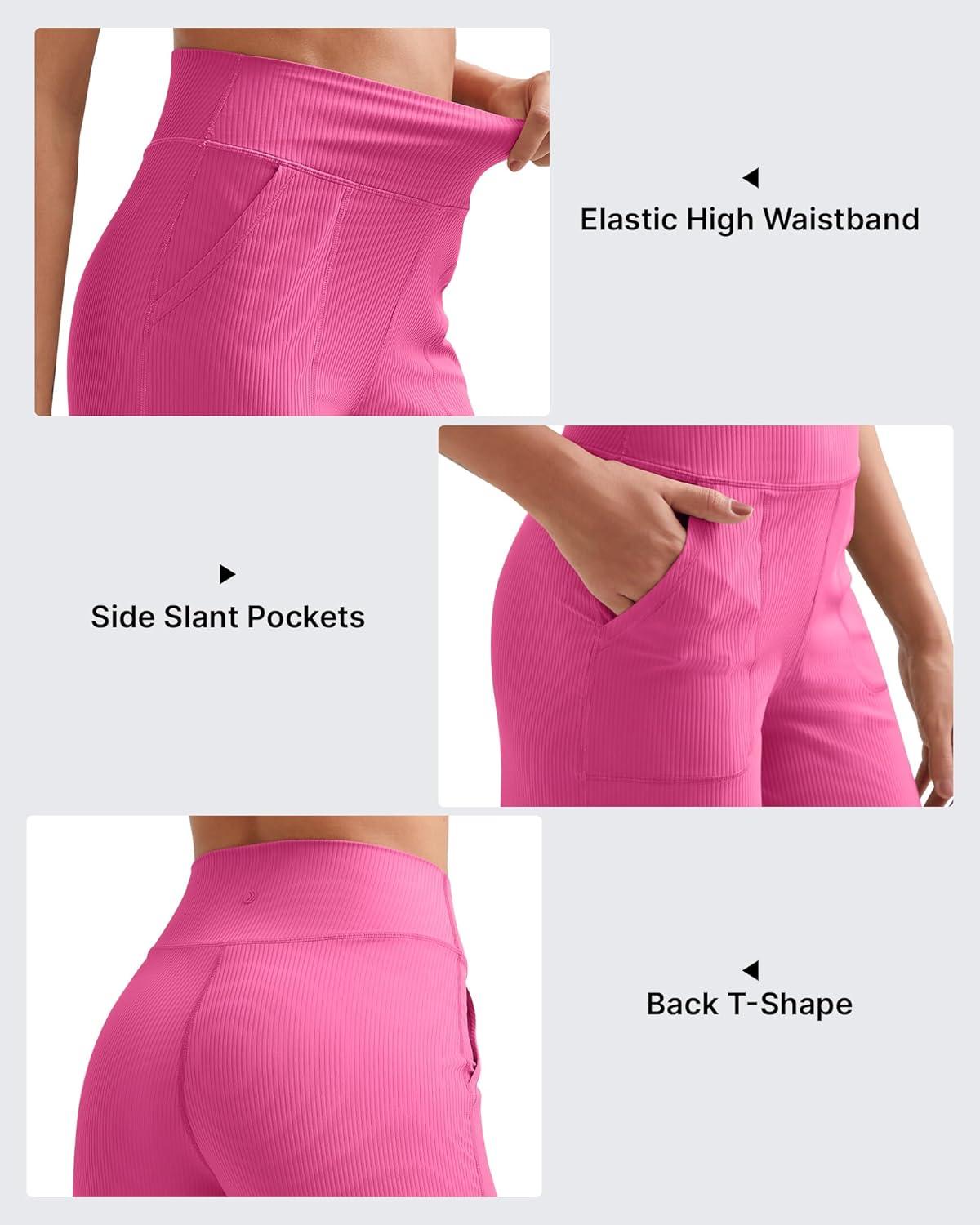 G4Free Womne’s Ribbed Knit Wide Leg Pants with Pockets Lightweight Stretchy Yoga Pants Casual Lounge(Hot Pink)