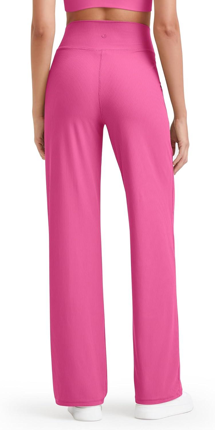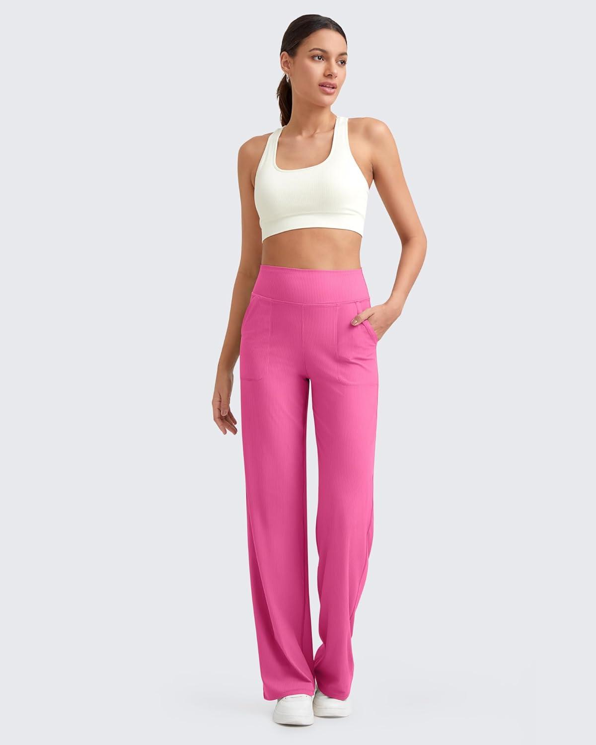 G4Free Womne's Ribbed Knit Wide Leg Pants with Pockets Lightweight Stretchy Yoga Pants Casual Lounge(Hot Pink)