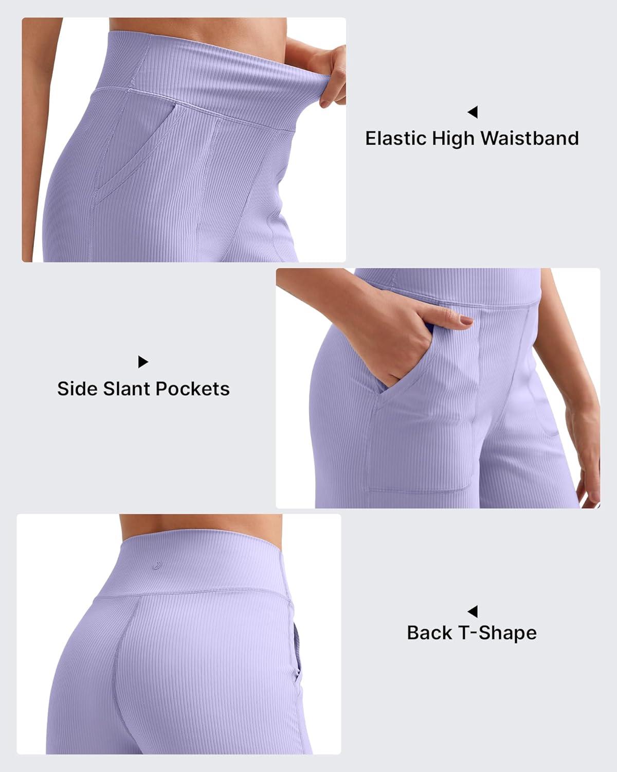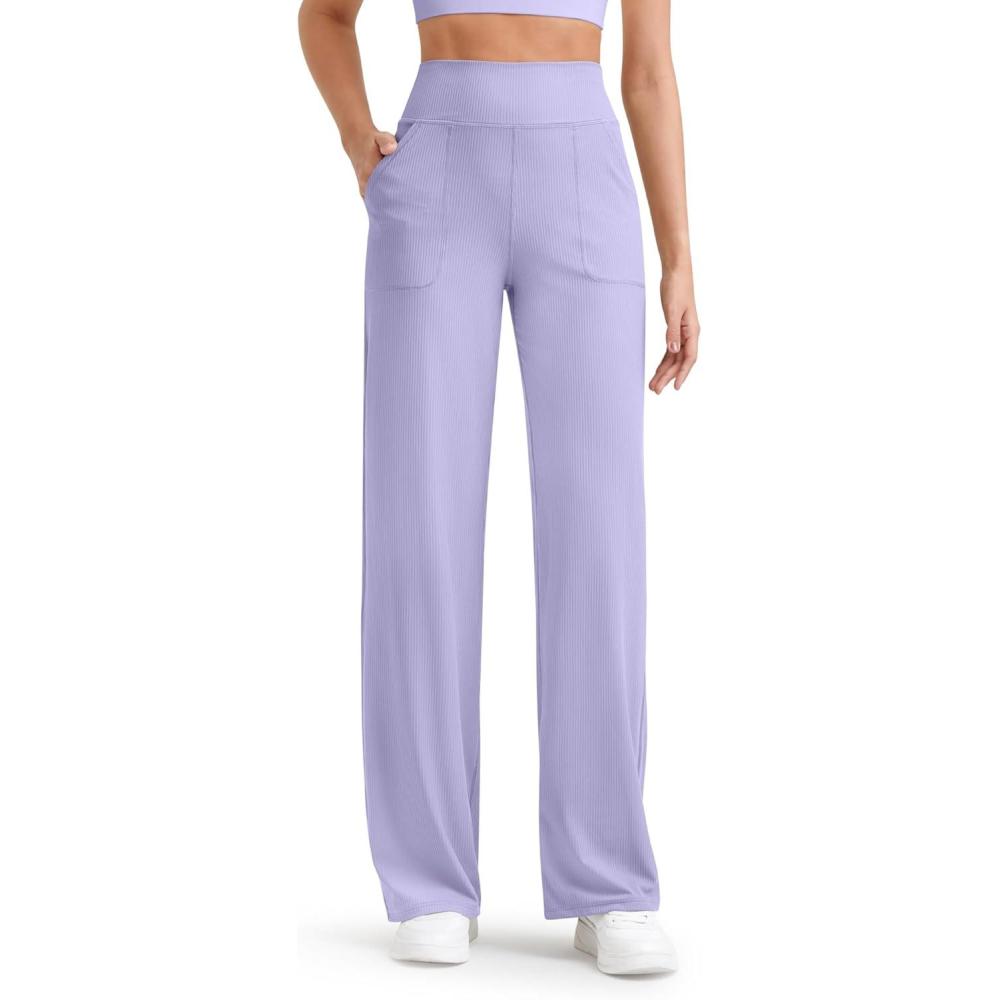 G4Free Womne’s Ribbed Knit Wide Leg Pants with Pockets Lightweight Stretchy Yoga Pants Casual Lounge(Lavender)