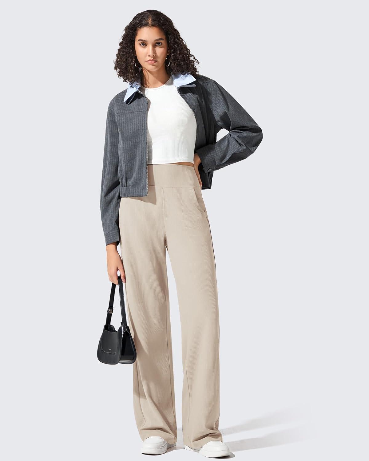 Be the first to review “G4Free Womne’s Ribbed Knit Wide Leg Pants with Pockets Lightweight Stretchy Yoga Pants Casual Lounge(Light Khaki)”