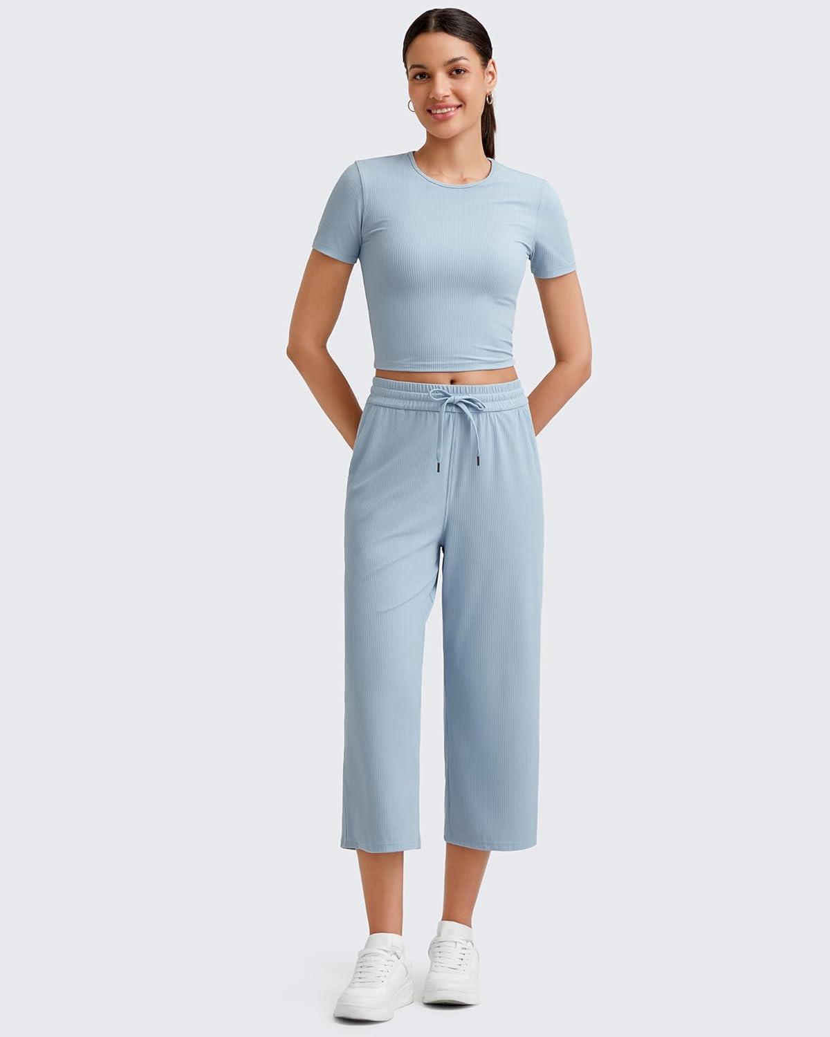 G4Free Workout Shirts Women Slim Fit Athletic Gym Work Out Tops Crop Short Sleeve Basic Yoga Tshirts Casual Summer(Blue Willow)