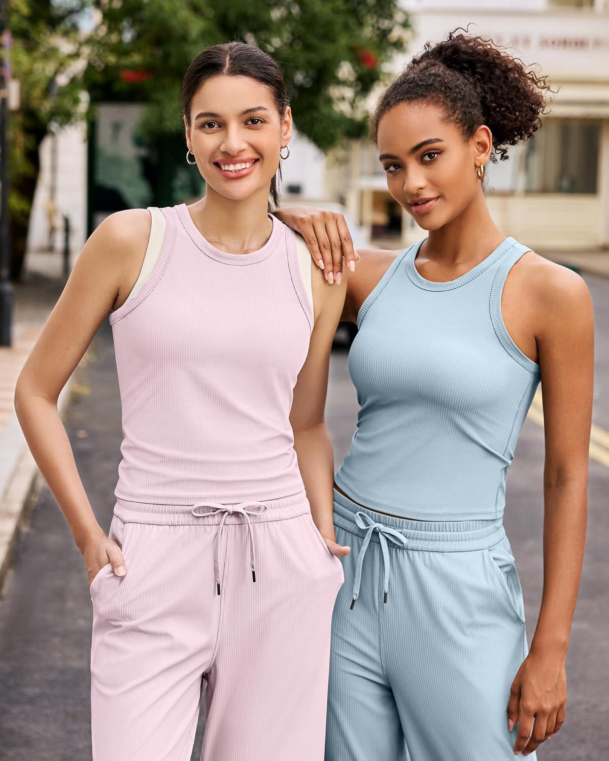 G4Free Workout Tank Tops for Women Slim Fitted Racerback Ribbed Athletic Gym Yoga Tanks Summer Casual(Powder Blue)