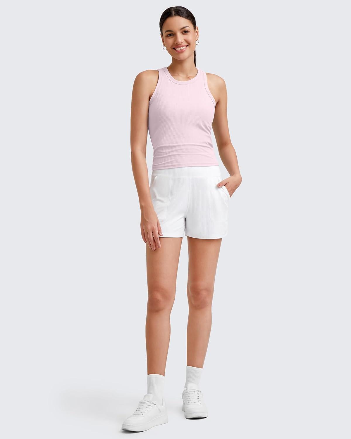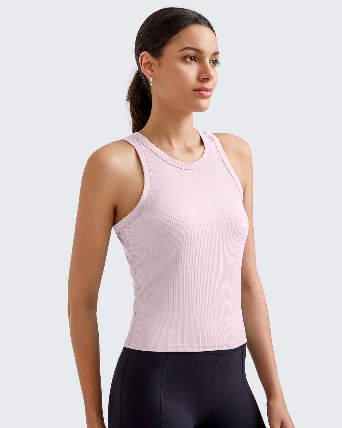 G4Free Workout Tank Tops for Women Slim Fitted Racerback Ribbed Athletic Gym Yoga Tanks Summer Casual(Blush)