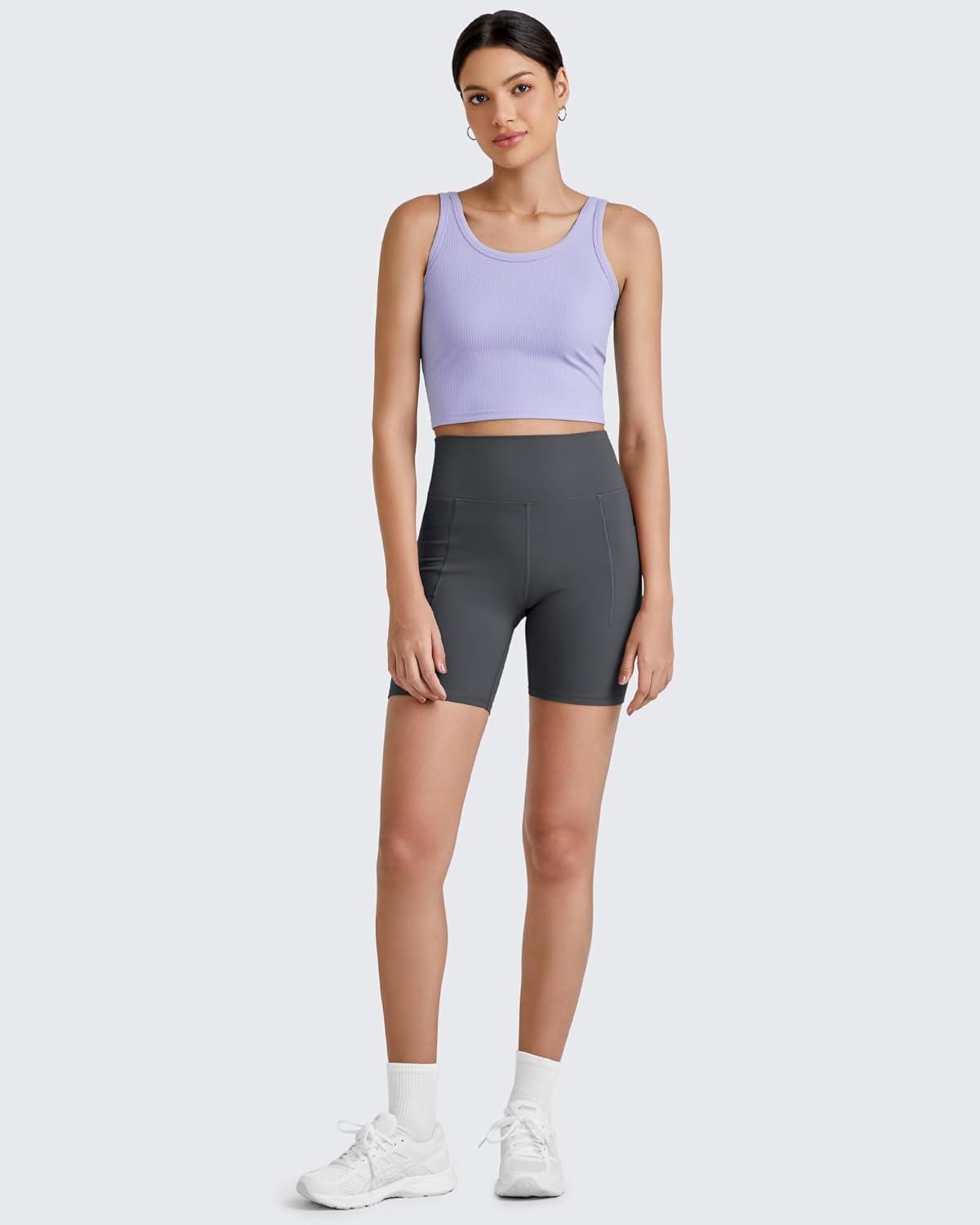 G4Free Workout Tank Tops for Women Slim Fitted U Neck Ribbed Athletic Gym Yoga Cropped Tanks Summer Casual(Lavender)
