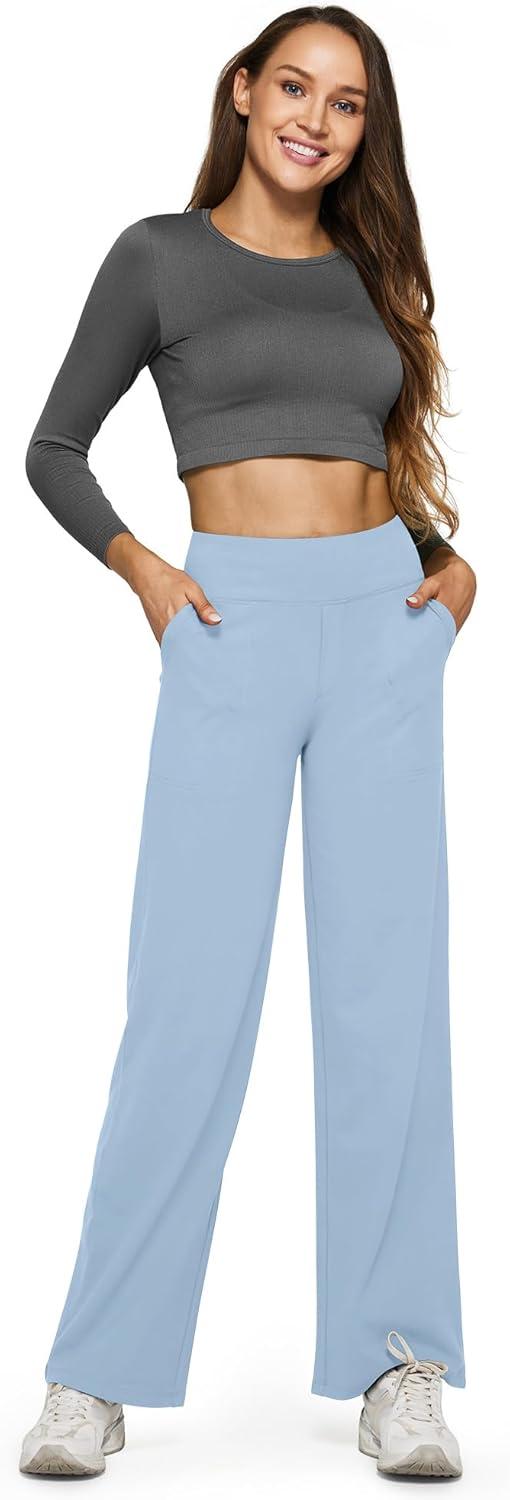 G4Free Yoga Pants Women Wide Leg Pants with Pockets High Waist Stretch Dress Casual Sweatpants Petite/Regular/Tall(Baby Blue)